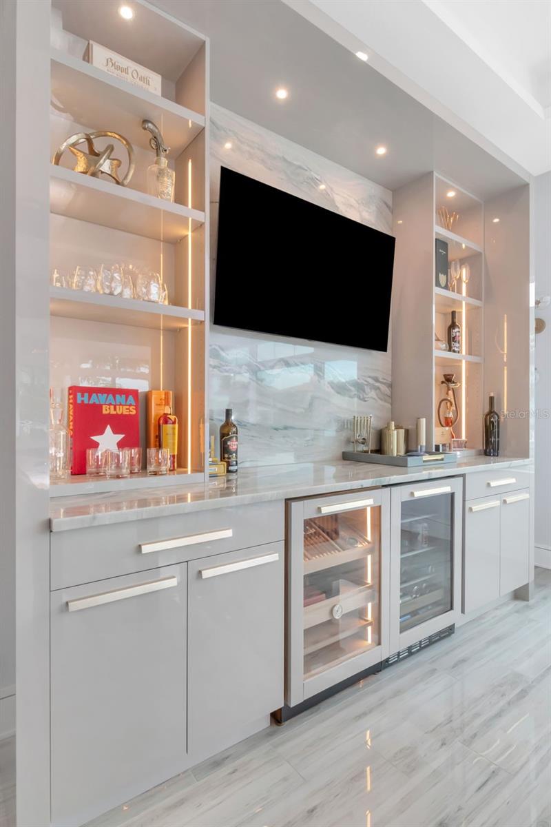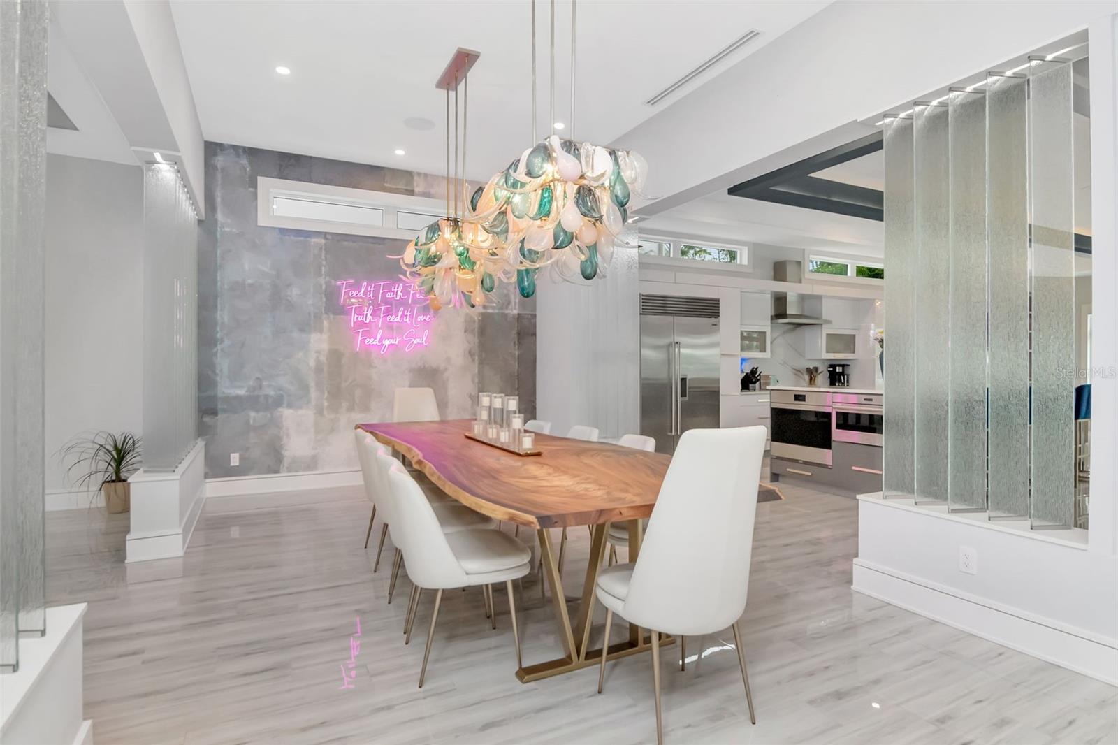 Step inside to an airy, open floor plan illuminated by natural light and anchored by a specially curated Illuminati Glass chandelier featuring 89 hand-blown pieces. The chef’s kitchen is a masterpiece of Custom Italian Cabinetry, sleek quartz countertops, and professional-grade Wolf and Sub-Zero appliances.