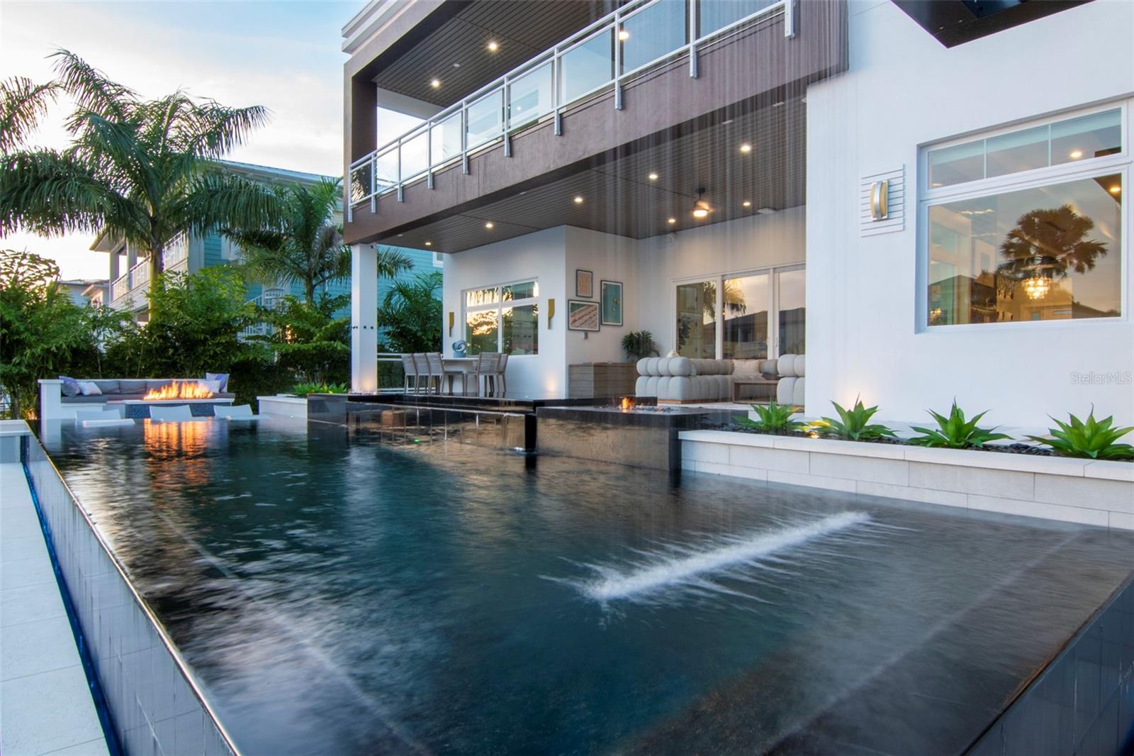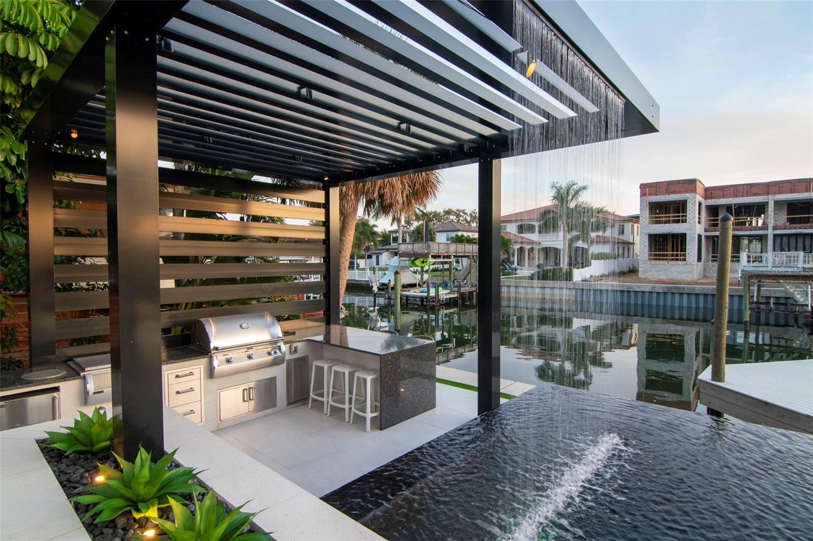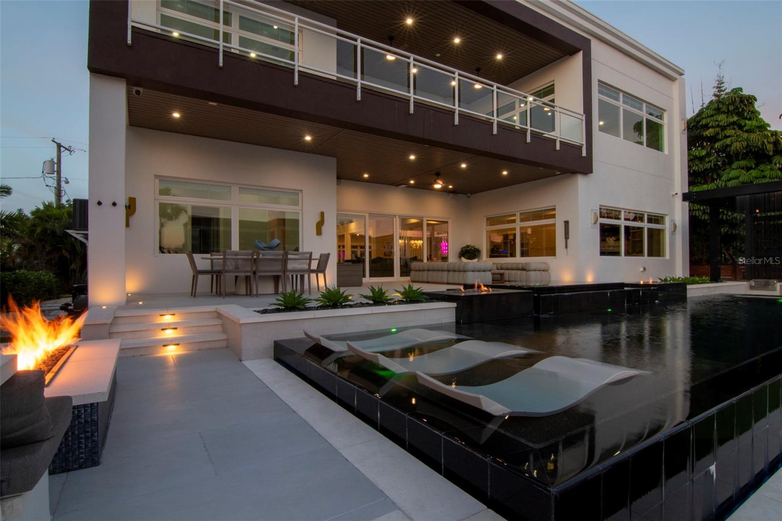 Outside, the Ryan Hughes-designed pool serves as a breathtaking courtyard centerpiece, featuring a sunken fire lounge, linear flame features, and a luxury outdoor kitchen under shaded pavilions. Plus, enjoy the benefits of solar energy in this high-tech, high-design masterpiece. Located on a wide canal just four lots from the open bay, this home is minutes from International Plaza and the Tampa International Airport.