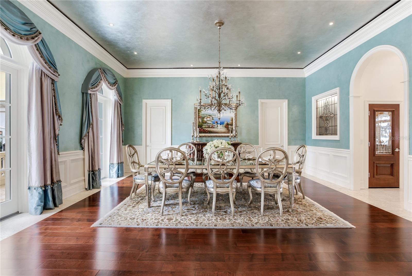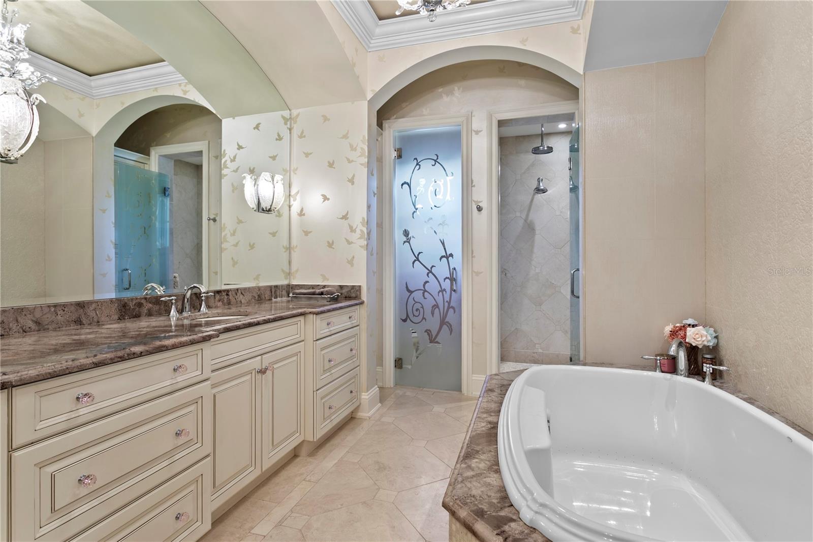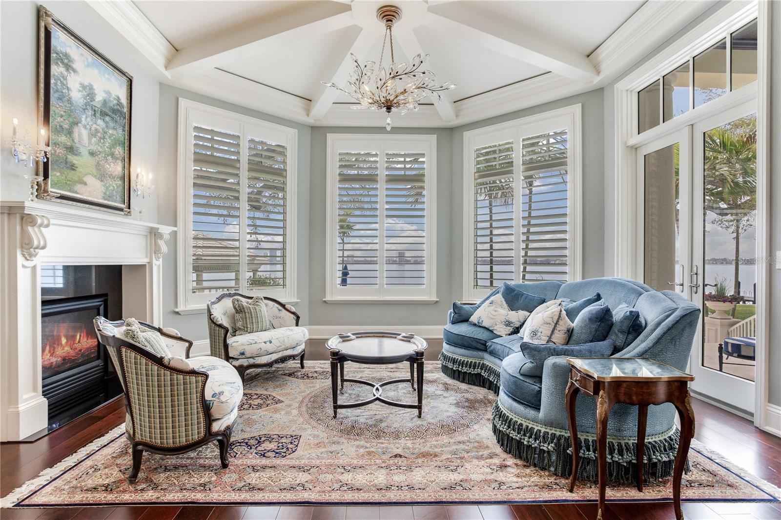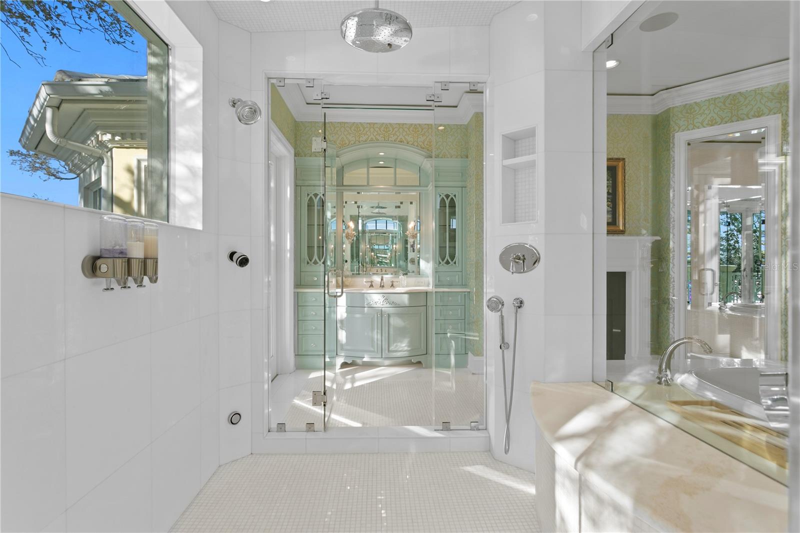 Experience the height of Livable Luxury in this extraordinary estate designed by Thomas Everett Lamb and built by Windstar Homes, an award-winning custom builder with over 100 industry accolades for craftsmanship and architectural excellence. Positioned on the open bay along Davis Islands, this one-of-a-kind residence blends timeless design with resort-style living. Created for grand-scale entertaining and refined everyday living, the home captures sweeping bay views, expansive terraces, and meticulously curated interiors. A stately arrival welcomes with parking for 9 vehicles and a 4-car garage, framed by hand-cast cement trim, shell detailing, and custom copper lanterns. Twin fountains accent the circular glass-paneled French doors, opening to a breathtaking foyer highlighted by a sweeping spiral staircase, intricate filigree ironwork, layered crown and dentil moldings, and a dramatic domed ceiling. The Grand Salon and formal dining spaces, including a dining alcove flanked by dual wine rooms with beveled glass, feature hardwood floors, hand-carved limestone fireplaces, and floor-to-ceiling arched windows. Walls of glass frame the west-facing veranda, gazebo, pool, fire pit, party dock, pickleball court, and unobstructed open bay. Exceptional craftsmanship is evident throughout, with concealed air-conditioning vents seamlessly integrated within the crown molding, deep windowsills, and extensive custom millwork. The chef’s kitchen centers around a massive island with beveled stone countertops and dual crystal chandeliers, complemented by Sub-Zero refrigeration, double dishwashers, and a Wolf range with griddle. A fully equipped scullery kitchen offers commercial refrigeration, double ovens, and additional prep space, ideal for catered events. A butler’s pantry, mudroom, and secondary laundry enhance daily functionality. Seamless indoor-outdoor living unfolds as the kitchen and great room open to a covered terrace featuring a pizza oven, warming drawer, beverage refrigerator, ice maker, sink, gas grill, and generous seating and dining areas overlooking the pool and bay. The first level also includes a bayfront office with custom cabinetry and fireplace, a game room with bar and adjacent theater, as well as a gym, craft, and multipurpose spaces. A private guest suite with rotunda seating, kitchenette, and elaborate bath completes the main floor. Upstairs, the primary suite is a private sanctuary occupying nearly one-third of the level. Entered through a grand vestibule, it features a bayfront sitting room with terrace access, limestone fireplace, dual custom walk-in closets with crystal chandeliers, and a spa-inspired bath with fireplace, steam shower, and marble finishes. Additional bedroom suites offer ensuite baths, custom cabinetry, and tranquil water or garden views, with many opening to private terraces. A separate guest or nanny suite, accessible via stairs and a hidden passage, includes a full kitchen, living area, bedroom, walk-in closet, laundry, and full bath. Outdoor living rivals a private resort, with a gazebo featuring marble bar seating for ten, a resort-style pool, fire pit, multiple terraces, pool baths, and a fully equipped kitchen. A crow’s nest terrace captures west-facing sunsets over the bay. With elevator access, 3 staircases, integrated technology, whole-home audio, and thoughtfully designed flow, this Davis Islands estate delivers architectural grandeur, modern luxury, and an unparalleled waterfront lifestyle.