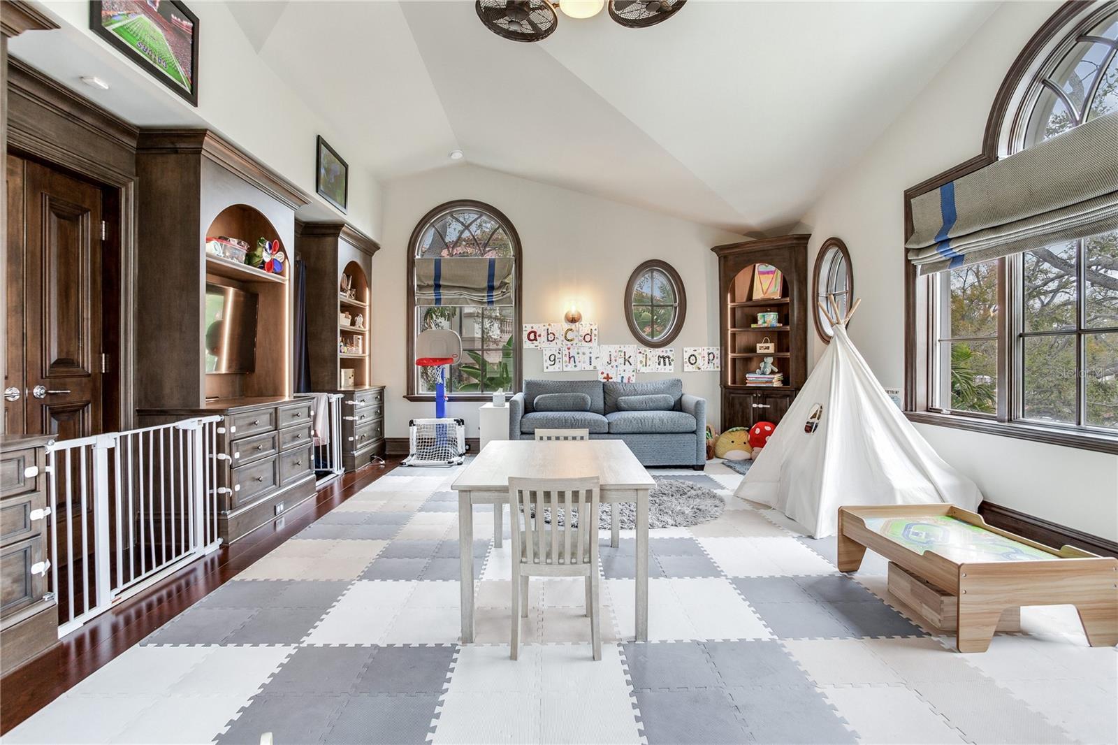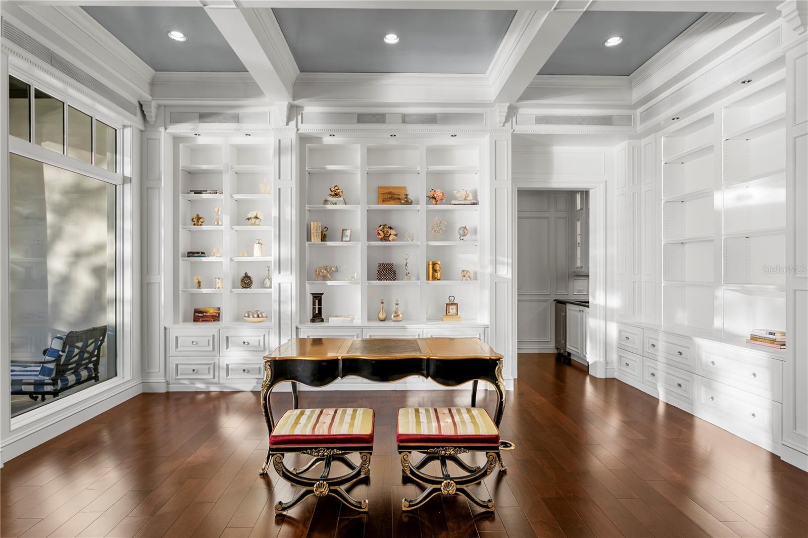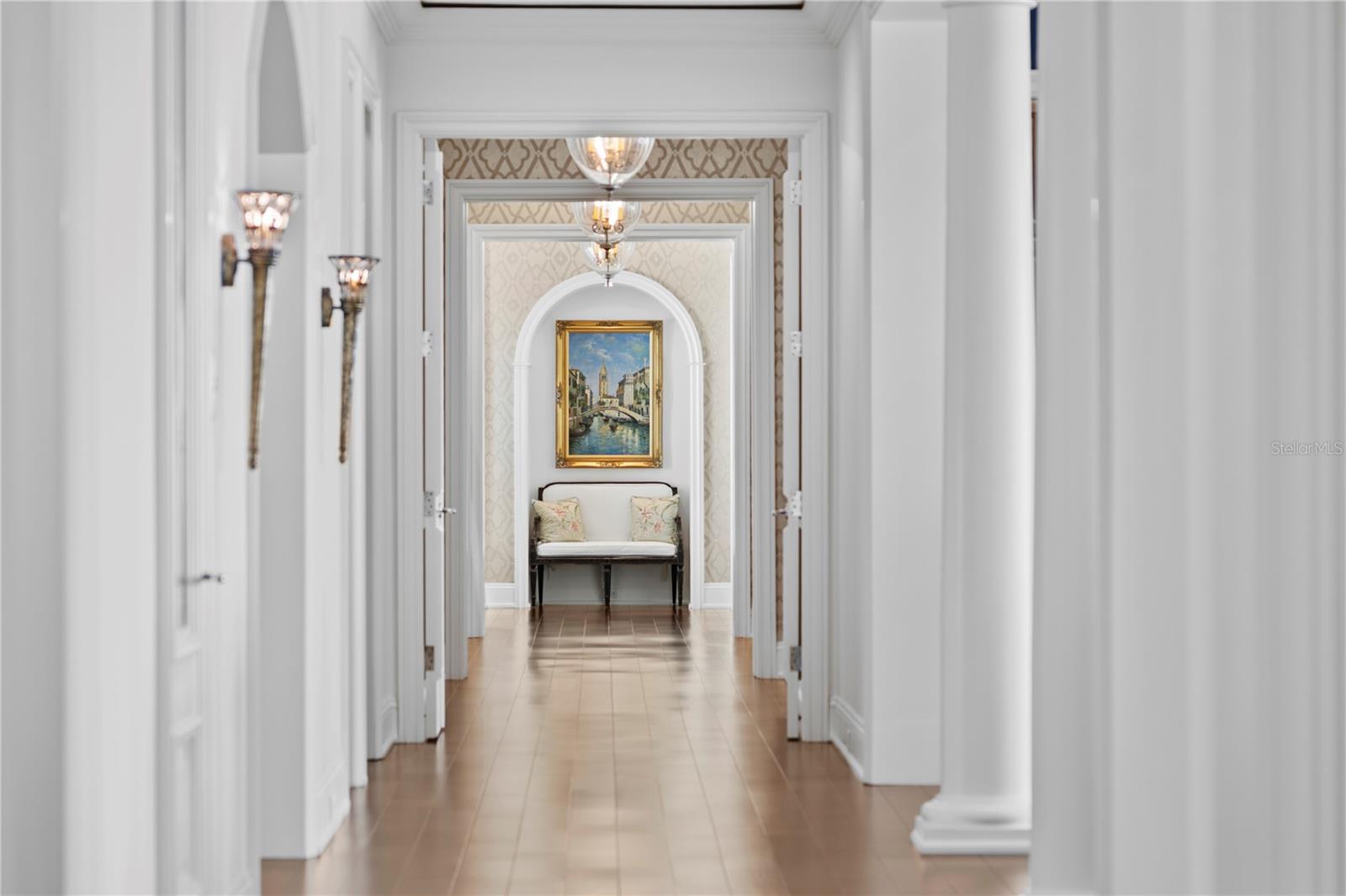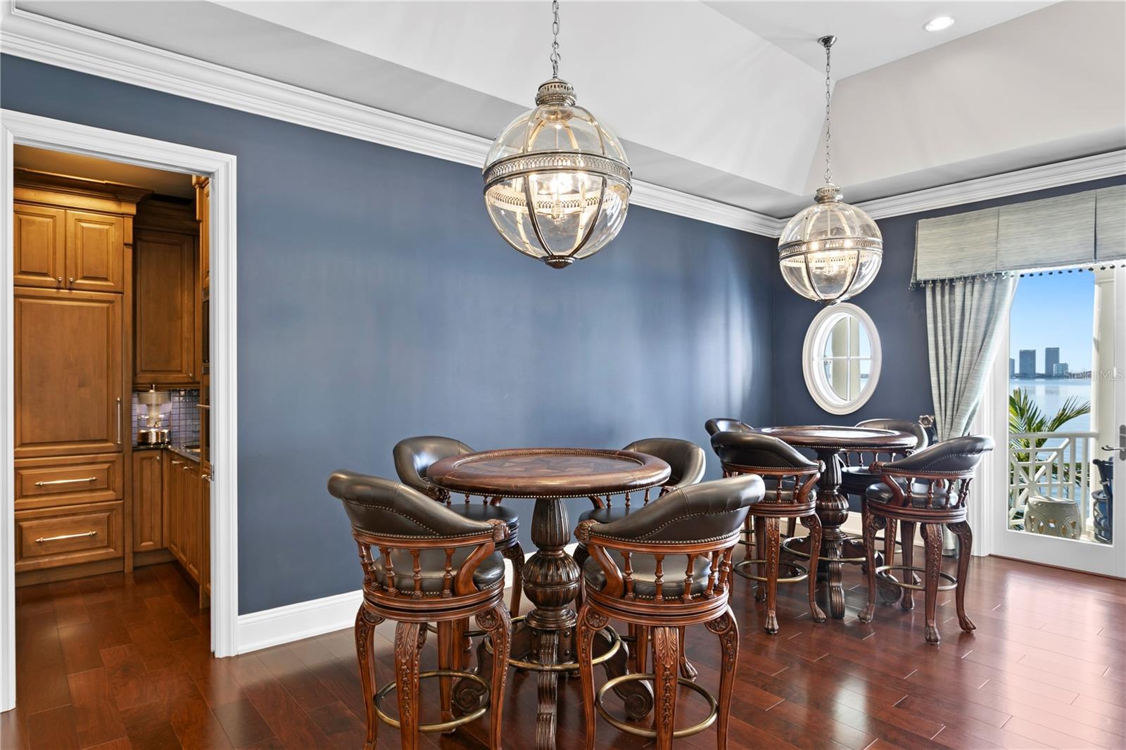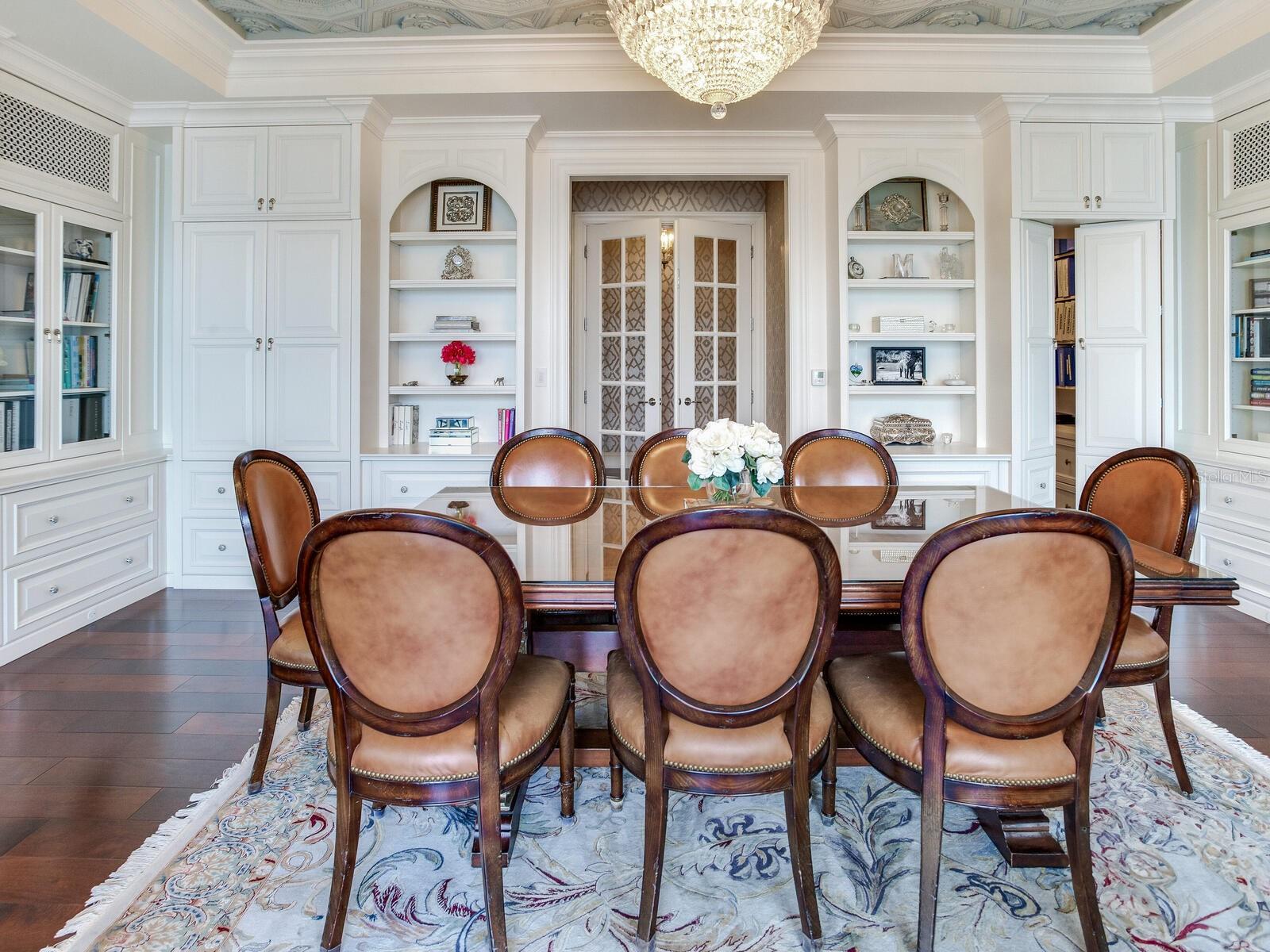 Experience the height of Livable Luxury in this extraordinary estate designed by Thomas Everett Lamb and built by Windstar Homes, an award-winning custom builder with over 100 industry accolades for craftsmanship and architectural excellence. Positioned on the open bay along Davis Islands, this one-of-a-kind residence blends timeless design with resort-style living. Created for grand-scale entertaining and refined everyday living, the home captures sweeping bay views, expansive terraces, and meticulously curated interiors. A stately arrival welcomes with parking for 9 vehicles and a 4-car garage, framed by hand-cast cement trim, shell detailing, and custom copper lanterns. Twin fountains accent the circular glass-paneled French doors, opening to a breathtaking foyer highlighted by a sweeping spiral staircase, intricate filigree ironwork, layered crown and dentil moldings, and a dramatic domed ceiling. The Grand Salon and formal dining spaces, including a dining alcove flanked by dual wine rooms with beveled glass, feature hardwood floors, hand-carved limestone fireplaces, and floor-to-ceiling arched windows. Walls of glass frame the west-facing veranda, gazebo, pool, fire pit, party dock, pickleball court, and unobstructed open bay. Exceptional craftsmanship is evident throughout, with concealed air-conditioning vents seamlessly integrated within the crown molding, deep windowsills, and extensive custom millwork. The chef’s kitchen centers around a massive island with beveled stone countertops and dual crystal chandeliers, complemented by Sub-Zero refrigeration, double dishwashers, and a Wolf range with griddle. A fully equipped scullery kitchen offers commercial refrigeration, double ovens, and additional prep space, ideal for catered events. A butler’s pantry, mudroom, and secondary laundry enhance daily functionality. Seamless indoor-outdoor living unfolds as the kitchen and great room open to a covered terrace featuring a pizza oven, warming drawer, beverage refrigerator, ice maker, sink, gas grill, and generous seating and dining areas overlooking the pool and bay. The first level also includes a bayfront office with custom cabinetry and fireplace, a game room with bar and adjacent theater, as well as a gym, craft, and multipurpose spaces. A private guest suite with rotunda seating, kitchenette, and elaborate bath completes the main floor. Upstairs, the primary suite is a private sanctuary occupying nearly one-third of the level. Entered through a grand vestibule, it features a bayfront sitting room with terrace access, limestone fireplace, dual custom walk-in closets with crystal chandeliers, and a spa-inspired bath with fireplace, steam shower, and marble finishes. Additional bedroom suites offer ensuite baths, custom cabinetry, and tranquil water or garden views, with many opening to private terraces. A separate guest or nanny suite, accessible via stairs and a hidden passage, includes a full kitchen, living area, bedroom, walk-in closet, laundry, and full bath. Outdoor living rivals a private resort, with a gazebo featuring marble bar seating for ten, a resort-style pool, fire pit, multiple terraces, pool baths, and a fully equipped kitchen. A crow’s nest terrace captures west-facing sunsets over the bay. With elevator access, 3 staircases, integrated technology, whole-home audio, and thoughtfully designed flow, this Davis Islands estate delivers architectural grandeur, modern luxury, and an unparalleled waterfront lifestyle.