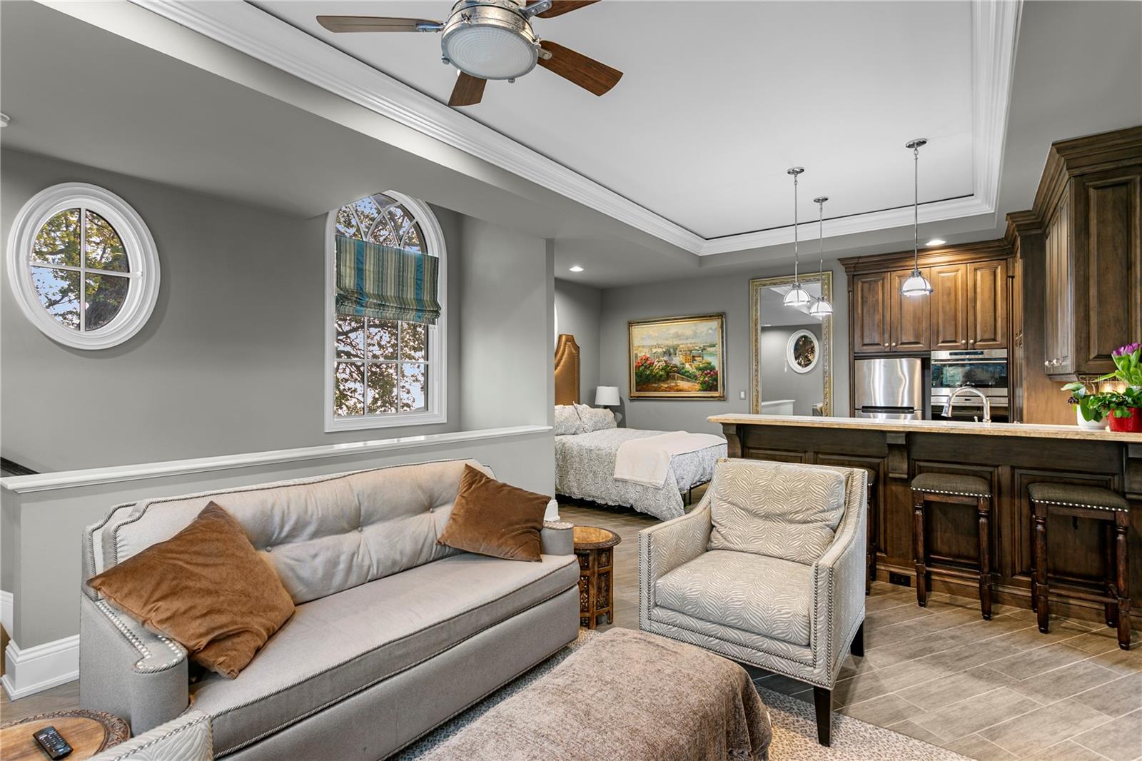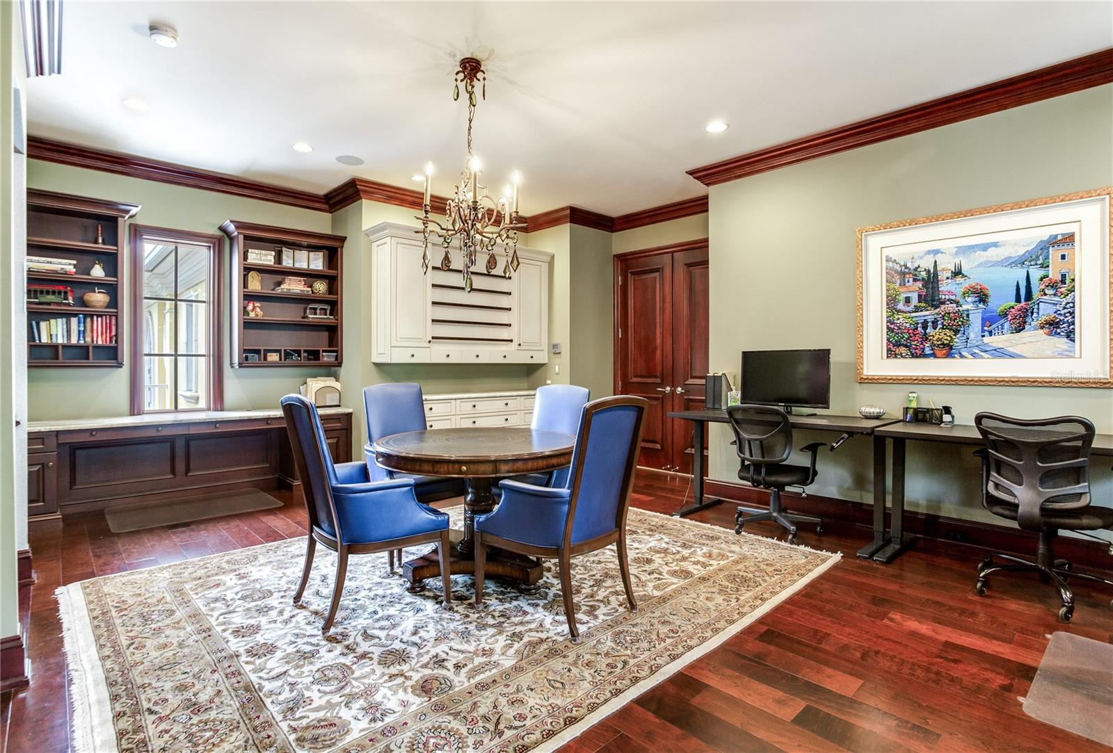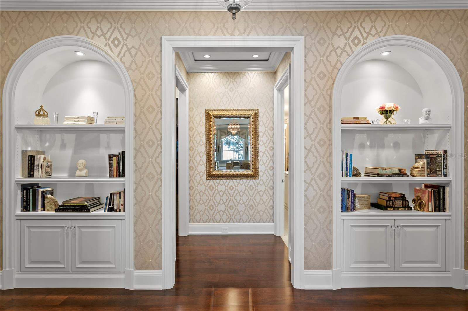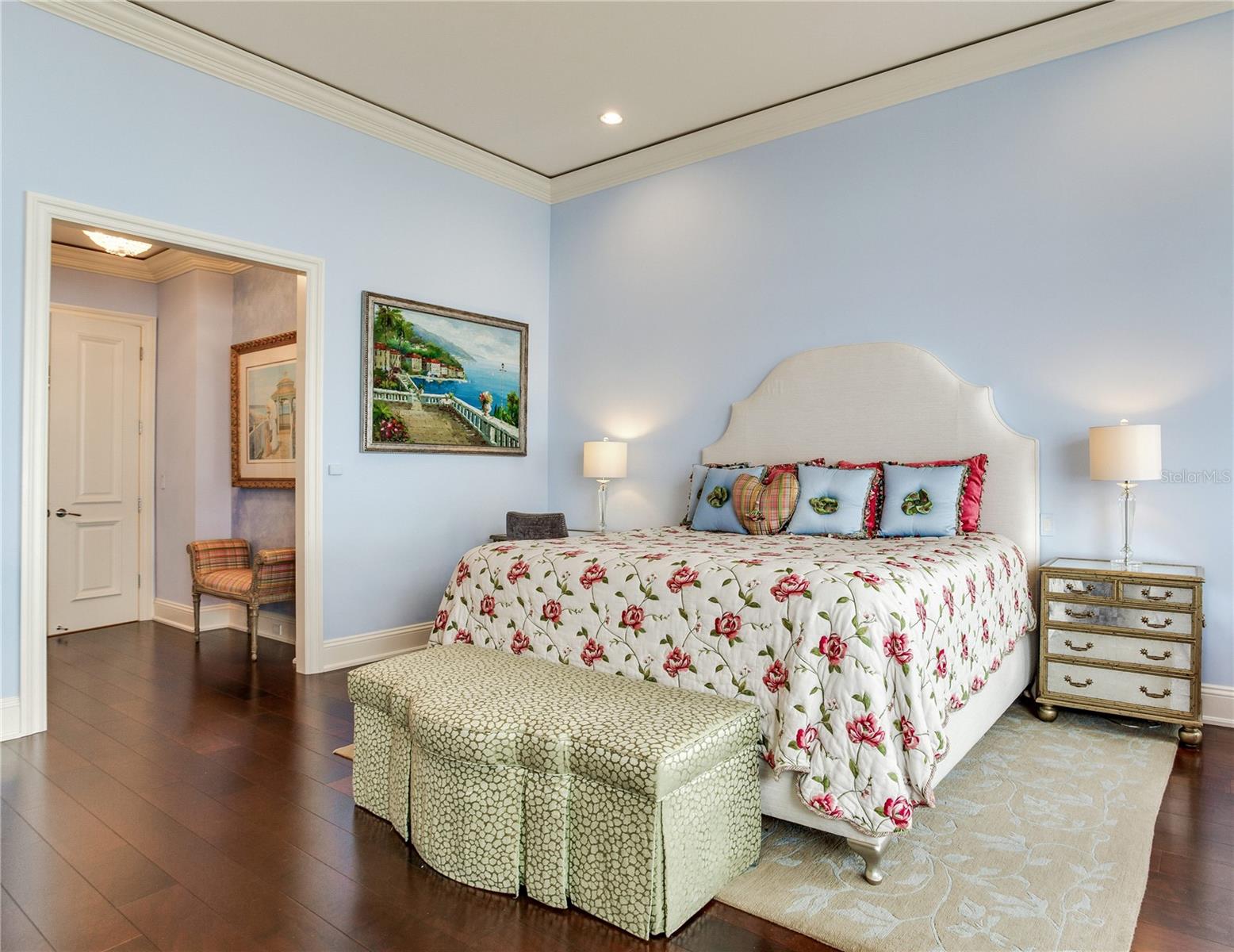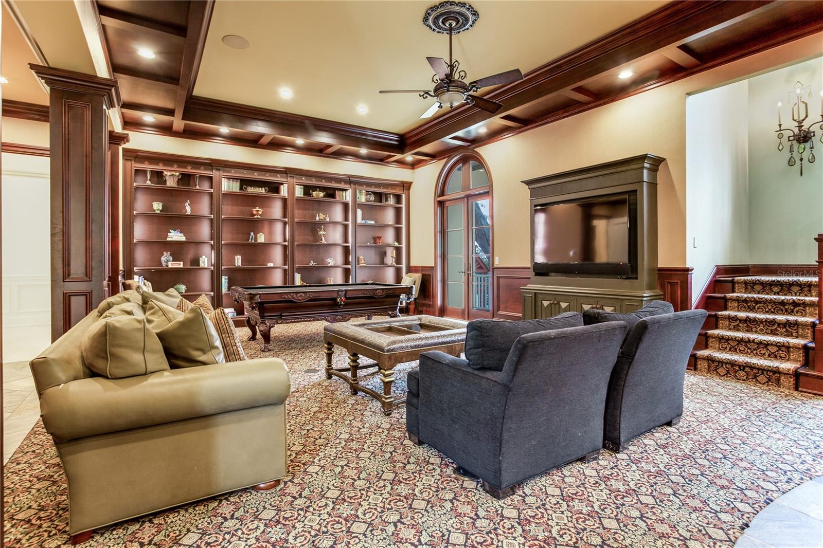 Experience the height of Livable Luxury in this extraordinary estate designed by Thomas Everett Lamb and built by Windstar Homes, an award-winning custom builder with over 100 industry accolades for craftsmanship and architectural excellence. Positioned on the open bay along Davis Islands, this one-of-a-kind residence blends timeless design with resort-style living. Created for grand-scale entertaining and refined everyday living, the home captures sweeping bay views, expansive terraces, and meticulously curated interiors. A stately arrival welcomes with parking for 9 vehicles and a 4-car garage, framed by hand-cast cement trim, shell detailing, and custom copper lanterns. Twin fountains accent the circular glass-paneled French doors, opening to a breathtaking foyer highlighted by a sweeping spiral staircase, intricate filigree ironwork, layered crown and dentil moldings, and a dramatic domed ceiling. The Grand Salon and formal dining spaces, including a dining alcove flanked by dual wine rooms with beveled glass, feature hardwood floors, hand-carved limestone fireplaces, and floor-to-ceiling arched windows. Walls of glass frame the west-facing veranda, gazebo, pool, fire pit, party dock, pickleball court, and unobstructed open bay. Exceptional craftsmanship is evident throughout, with concealed air-conditioning vents seamlessly integrated within the crown molding, deep windowsills, and extensive custom millwork. The chef’s kitchen centers around a massive island with beveled stone countertops and dual crystal chandeliers, complemented by Sub-Zero refrigeration, double dishwashers, and a Wolf range with griddle. A fully equipped scullery kitchen offers commercial refrigeration, double ovens, and additional prep space, ideal for catered events. A butler’s pantry, mudroom, and secondary laundry enhance daily functionality. Seamless indoor-outdoor living unfolds as the kitchen and great room open to a covered terrace featuring a pizza oven, warming drawer, beverage refrigerator, ice maker, sink, gas grill, and generous seating and dining areas overlooking the pool and bay. The first level also includes a bayfront office with custom cabinetry and fireplace, a game room with bar and adjacent theater, as well as a gym, craft, and multipurpose spaces. A private guest suite with rotunda seating, kitchenette, and elaborate bath completes the main floor. Upstairs, the primary suite is a private sanctuary occupying nearly one-third of the level. Entered through a grand vestibule, it features a bayfront sitting room with terrace access, limestone fireplace, dual custom walk-in closets with crystal chandeliers, and a spa-inspired bath with fireplace, steam shower, and marble finishes. Additional bedroom suites offer ensuite baths, custom cabinetry, and tranquil water or garden views, with many opening to private terraces. A separate guest or nanny suite, accessible via stairs and a hidden passage, includes a full kitchen, living area, bedroom, walk-in closet, laundry, and full bath. Outdoor living rivals a private resort, with a gazebo featuring marble bar seating for ten, a resort-style pool, fire pit, multiple terraces, pool baths, and a fully equipped kitchen. A crow’s nest terrace captures west-facing sunsets over the bay. With elevator access, 3 staircases, integrated technology, whole-home audio, and thoughtfully designed flow, this Davis Islands estate delivers architectural grandeur, modern luxury, and an unparalleled waterfront lifestyle.