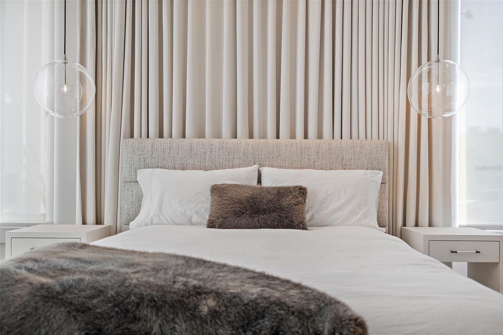 A fully automated Control4 system manages lighting, shades, audio, climate, security, and accent lighting—easily operated via custom remote or app.