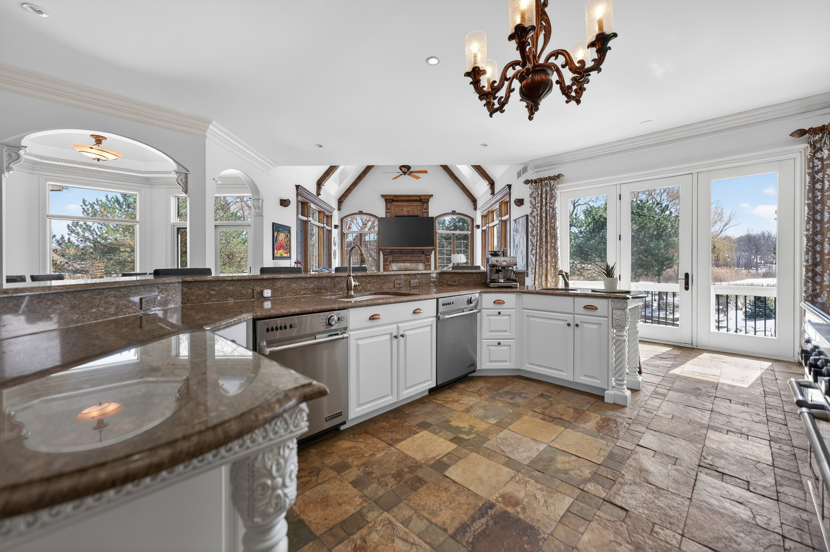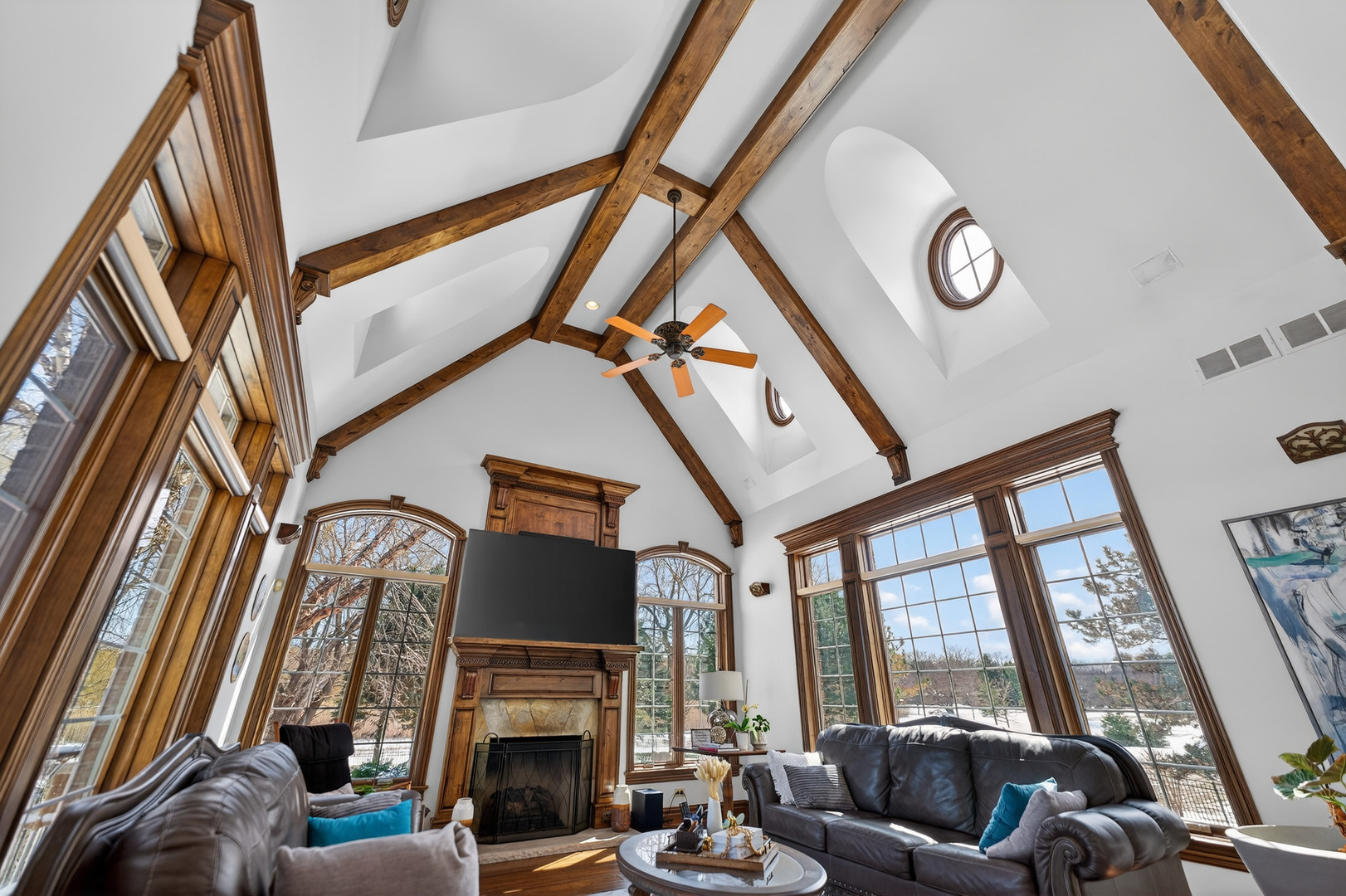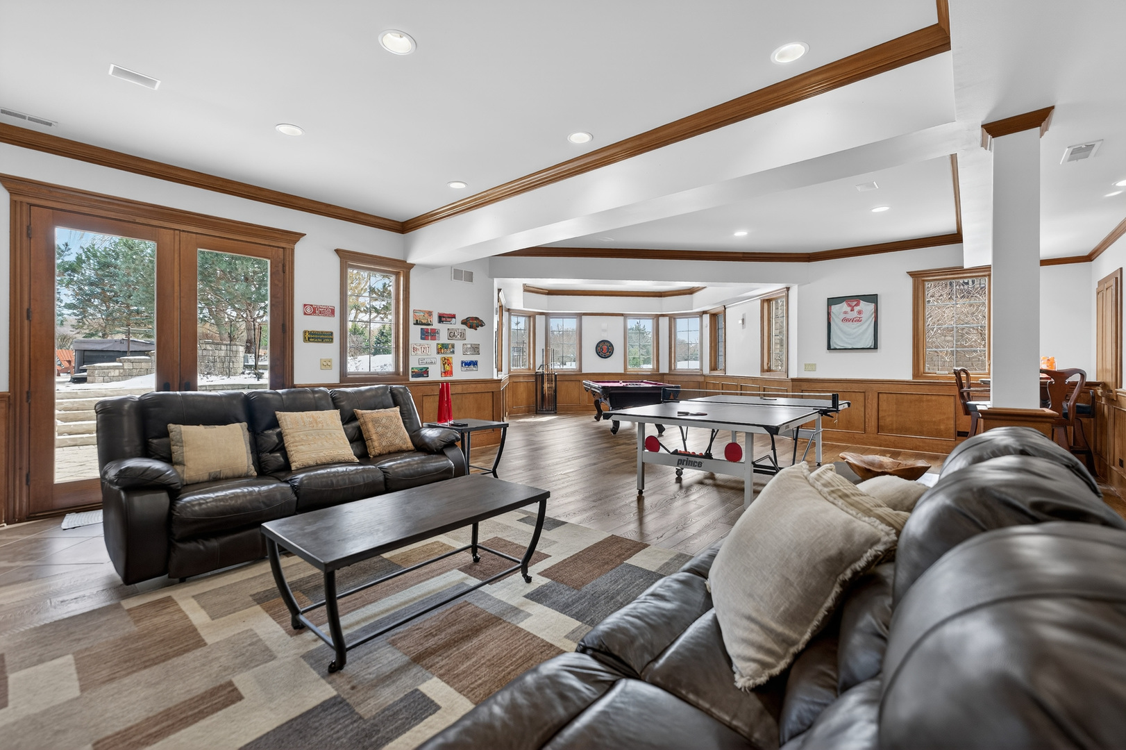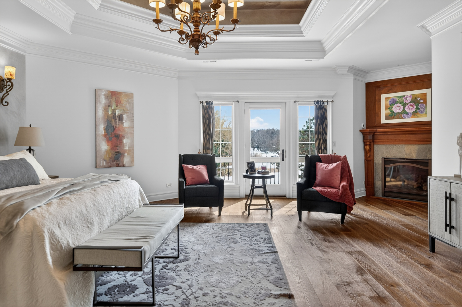 Welcome to 5N155 Prairie Rose Drive, a private lakefront inspired estate in the prestigious Prairie Lakes community offering resort style living w/ a pool, sweeping water views, and an exceptional walk out entertainment level. Designed for both elegant entertaining and everyday comfort, this home blends timeless architecture, expansive living spaces, and peaceful waterfront surroundings. Situated on a beautifully landscaped 0.93 acre lot w/ over 11,500 square feet of finished living space, the property offers rare privacy while capturing scenic lake views throughout the home and outdoor living areas. Inside, craftsmanship and modern updates come together through soaring ceilings, detailed millwork, and updated flooring completed in 2023. The kitchen is designed for both functionality and gathering, featuring high end appliances, custom cabinetry, elegant finishes, and a spacious eating area that opens directly to the screened porch and expansive deck. This thoughtful layout creates effortless indoor outdoor living overlooking the pool and landscaped backyard. A well placed 1st floor bar connects the great room and formal dining room, creating a natural flow for entertaining. A private 1st floor bdrm w/ a full bathrm and balcony overlooking the pool offers an ideal guest or in law suite. The main level also includes 2 powder rms, 2 mudrooms w/ direct garage access, and a spacious 1st floor laundry rmdesigned for everyday convenience. One of the home's most distinctive features is the dramatic 2 story executive office, where expansive windows and intricate custom millwork create an inspiring work from home environment rarely found in residential properties. Upstairs, the primary suite offers a peaceful retreat w/ a private balcony capturing beautiful lake views. The suite includes a wet bar w/ wine refrigerator, a custom walk in closet, and a spa inspired primary bathrm featuring a striking mosaic tile shower and refined finishes. A private 2nd floor laundry rm adds additional convenience. Each additional bdrm features a walk in closet and its own en suite bathrm, providing comfort and privacy for family and guests. The fully finished walk out lower level transforms the home into a private entertainment destination, featuring heated floors, a full bar, private theater, full bathrm, and expansive gathering spaces ideal for hosting large events or relaxed evenings w/ family and friends. Direct garage access from the lower level adds another level of functionality rarely found in homes of this scale. Outside, the resort style pool and surrounding outdoor living spaces create an inviting setting for entertaining, relaxing, and enjoying peaceful lake views. Mature landscaping and the expansive lot provide privacy while showcasing the natural beauty of Prairie Lakes. Located within highly rated St. Charles Community Unit School District 303, this home offers convenient access to scenic parks, walking trails, golf courses, and the vibrant dining, shopping, and riverfront atmosphere of St. Charles. Significant updates include 3 newer HVAC systems (2023), 2 water heaters (2019), fresh interior paint & a newer pool filter (2025). This extraordinary Prairie Lakes estate delivers a rare combination of luxury, privacy, lake views & resort-style living in one of St. Charles' most sought-after communities, making it one of the most desirable St. Charles luxury homes for sale w/ pool & lake views.