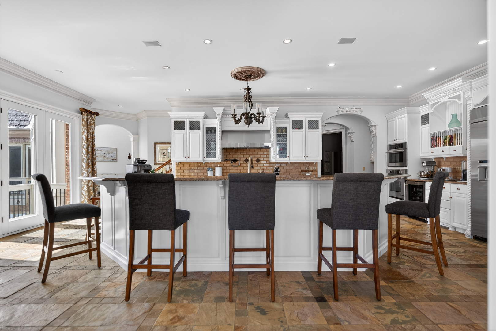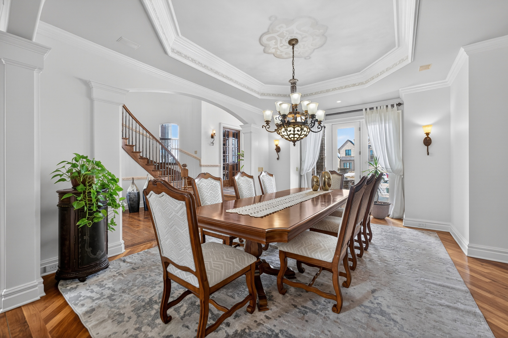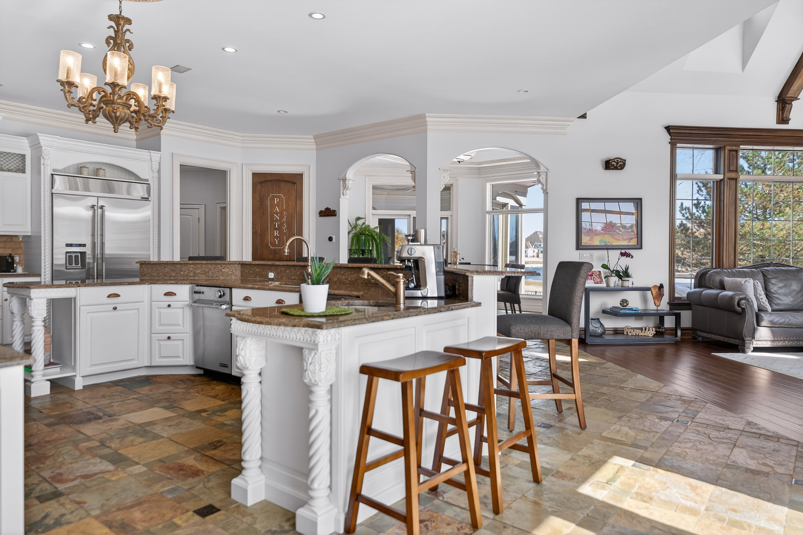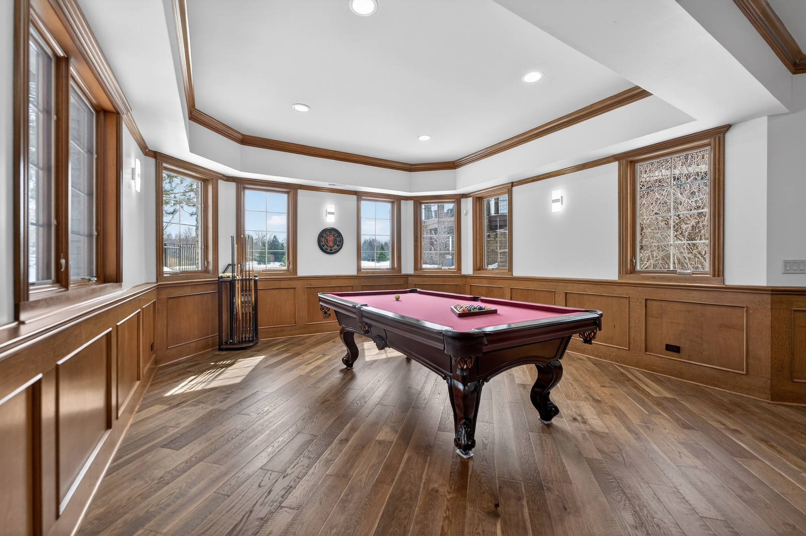 Welcome to 5N155 Prairie Rose Drive, a private lakefront inspired estate in the prestigious Prairie Lakes community offering resort style living w/ a pool, sweeping water views, and an exceptional walk out entertainment level. Designed for both elegant entertaining and everyday comfort, this home blends timeless architecture, expansive living spaces, and peaceful waterfront surroundings. Situated on a beautifully landscaped 0.93 acre lot w/ over 11,500 square feet of finished living space, the property offers rare privacy while capturing scenic lake views throughout the home and outdoor living areas. Inside, craftsmanship and modern updates come together through soaring ceilings, detailed millwork, and updated flooring completed in 2023. The kitchen is designed for both functionality and gathering, featuring high end appliances, custom cabinetry, elegant finishes, and a spacious eating area that opens directly to the screened porch and expansive deck. This thoughtful layout creates effortless indoor outdoor living overlooking the pool and landscaped backyard. A well placed 1st floor bar connects the great room and formal dining room, creating a natural flow for entertaining. A private 1st floor bdrm w/ a full bathrm and balcony overlooking the pool offers an ideal guest or in law suite. The main level also includes 2 powder rms, 2 mudrooms w/ direct garage access, and a spacious 1st floor laundry rmdesigned for everyday convenience. One of the home's most distinctive features is the dramatic 2 story executive office, where expansive windows and intricate custom millwork create an inspiring work from home environment rarely found in residential properties. Upstairs, the primary suite offers a peaceful retreat w/ a private balcony capturing beautiful lake views. The suite includes a wet bar w/ wine refrigerator, a custom walk in closet, and a spa inspired primary bathrm featuring a striking mosaic tile shower and refined finishes. A private 2nd floor laundry rm adds additional convenience. Each additional bdrm features a walk in closet and its own en suite bathrm, providing comfort and privacy for family and guests. The fully finished walk out lower level transforms the home into a private entertainment destination, featuring heated floors, a full bar, private theater, full bathrm, and expansive gathering spaces ideal for hosting large events or relaxed evenings w/ family and friends. Direct garage access from the lower level adds another level of functionality rarely found in homes of this scale. Outside, the resort style pool and surrounding outdoor living spaces create an inviting setting for entertaining, relaxing, and enjoying peaceful lake views. Mature landscaping and the expansive lot provide privacy while showcasing the natural beauty of Prairie Lakes. Located within highly rated St. Charles Community Unit School District 303, this home offers convenient access to scenic parks, walking trails, golf courses, and the vibrant dining, shopping, and riverfront atmosphere of St. Charles. Significant updates include 3 newer HVAC systems (2023), 2 water heaters (2019), fresh interior paint & a newer pool filter (2025). This extraordinary Prairie Lakes estate delivers a rare combination of luxury, privacy, lake views & resort-style living in one of St. Charles' most sought-after communities, making it one of the most desirable St. Charles luxury homes for sale w/ pool & lake views.