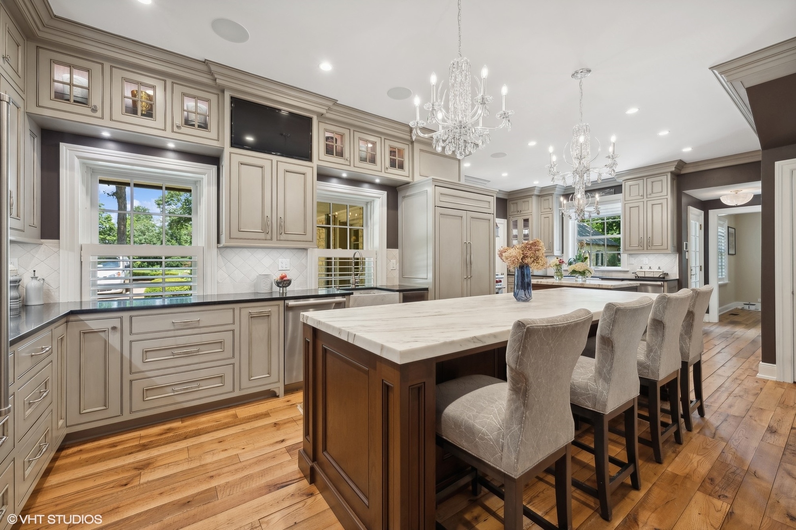 Welcome to Stone Wood Manor, a magnificent estate originally built in 1935 & located on a beautiful property in the Fox River Valley, just 35 miles west of Chicago. This historic home, designed by the esteemed architects Frazier & Rafter, took 3 years to complete & features exquisite details throughout. In 2016, this estate underwent a major renovation by Marshall Architects and Didier Custom Homes, seamlessly blending its timeless elegance with state-of-the-art amenities, ensuring it remains one of the most beautiful homes in the Midwest. Situated on over 9 acres of heavily wooded land with a .25-mile walking path & a serene pond, the property includes 3 structures: the Main House, the Pool House, and the Pickleball Court & Studio. The magnificent 13,500 SQFT main home features 7 bedroom-suites, each equipped with luxurious new bathrooms, ensuring comfort & elegance for every guest. Entertain in grand style in the extravagant formal dining room, or enjoy a quiet evening in the piano room, which boasts a Yamaha concert digital piano. Wine enthusiasts will appreciate the wine room, perfect for storing & savoring fine vintages. The large kitchen, redesigned in 2021, is a chef's dream complete with modern appliances & a cozy breakfast nook. The primary bedroom suite is a sanctuary of luxury & comfort featuring a cozy sitting area, complete with a fireplace, making it the perfect spot to unwind after a long day. The large bath is a true oasis, offering high-end fixtures, a deep soaking tub, and a separate walk-in shower. Every detail has been carefully considered to create a spa-like experience, from the elegant tilework to the premium finishes. A dream walk-in closet completes this exquisite suite, providing ample storage & organization with custom built-ins. This thoughtfully designed space ensures that everything has its place. Entertainment options abound with 18 flat-screen TVs throughout the home & a state-of-the-art movie theatre, updated in 2024 with 8 comfortable seats. Socialize in the sophisticated replica of the RL bar or conduct business in the spacious office. Stay fit in the fully equipped gym or unwind in the game room complete with a snack kitchen. For relaxation, the spa room includes a built-in pedicure tub, massage table, and hair salon. The manor is warmed by 5 fireplaces. Outdoor living is equally impressive with an outdoor barbecue kitchen, a fire pit, and al fresco dining on the bluestone patio. The 2nd floor balcony offers stunning views of the surrounding landscape. The attached 4 car garage provides ample space for vehicle storage & more, making it perfect for car enthusiasts. This estate also features a separate, detached 2 car garage. A new state-of-the-art pool is complete with a hot tub & two waterfalls cascading off rock formations. The oversized patio area with firepit provides ample space for lounging & socializing. Completely renovated in 2016, the Pool House offers an array of top-tier features designed for relaxation & entertainment. Enjoy a built-in custom bar & a cozy fireplace in the entertainment area, a poker room, full bath, changing room, and a laundry area. Built in 2022, the Pickleball Court & Studio features an additional 2 car heated garage & a wet bar for refreshments. Sports enthusiasts will appreciate the lighted pickleball court & basketball sport court, while the private patio with a fire pit offers a perfect spot to relax & enjoy the view of the court. The studio loft above the garage provides additional space, ideal for a home office, studio, or guest suite. The property is equipped with a generator back-up system, ensuring uninterrupted comfort & security. The property is also zoned for horses. Stone Wood Manor is the perfect blend of luxury & functionality, designed to cater to your every need. This home comes with a golf membership to the prestigious St. Charles Country Club, which features a championship 18-hole golf course. Welcome Home.