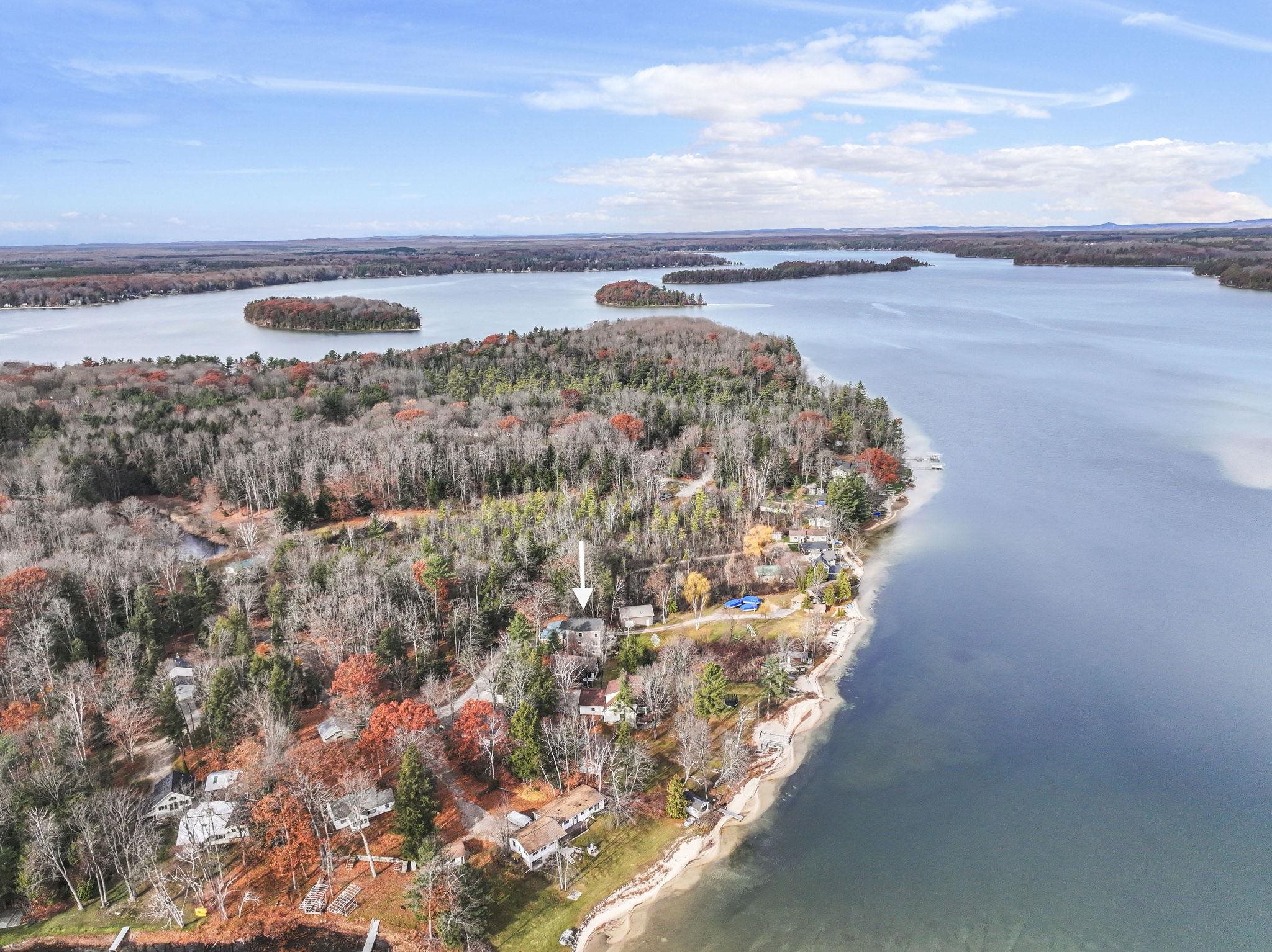 Discover an exceptional Long Lake estate offering unmatched space, comfort, and amenities across two expansive lots with two tax IDs. The main home features 7 bedrooms and 4‚ ½ bathrooms, including a private mother-in-law suite complete with a full kitchen and cozy fireplace. The main kitchen is a chefs dream, showcasing soapstone countertops, a custom walnut-and-maple island, and double ovens, perfect for entertaining on any scale. Multiple living spaces, including three separate living areas. Throughout the main level, youll find 9 foot ceilings, Bluetooth ceiling speakers, and wiring that extends into the primary bedroom, bath, and deck. The home includes thoughtful luxury touches such as heated floors in the primary bathroom and lower-level bath, a built-in sauna, and a natural gas grill connection on the deck. Step outside and enjoy an outdoor shower, a lot large enough for a soccer field, and a pole building for additional storage or hobby use. A private drive leads directly to the shoreline, where the estate boasts amazing sandy frontage with a hard sandy bottom ideal for swimming and water enjoyment.The guest cottage, currently operated as an short term rental, offers excellent income potential or additional private lodging. It features its own well and septic, a charming fireplace, 2 bedrooms, 1 bathroom, and a covered porch overlooking the property. Ownership in this exclusive community includes access to exceptional shared amenities: a private playground with baseball diamond, disc golf course, private walking trails, use of the covered pavilion, and a private boat launch, meaning youll never need to visit a public launch again. With incredible space, luxurious amenities, and premium sandy waterfront on two lots, this property delivers an unparalleled lakeside living experience.