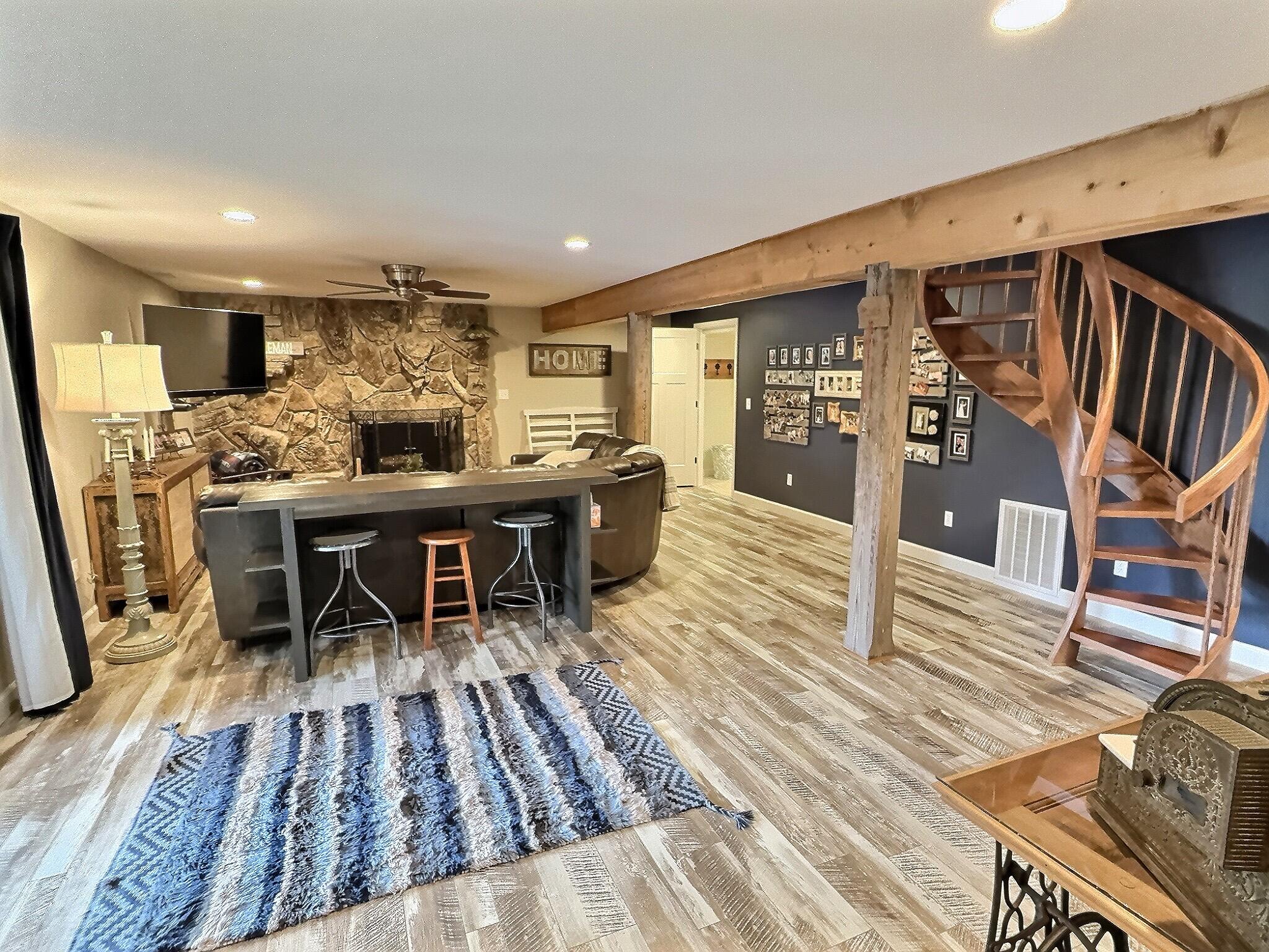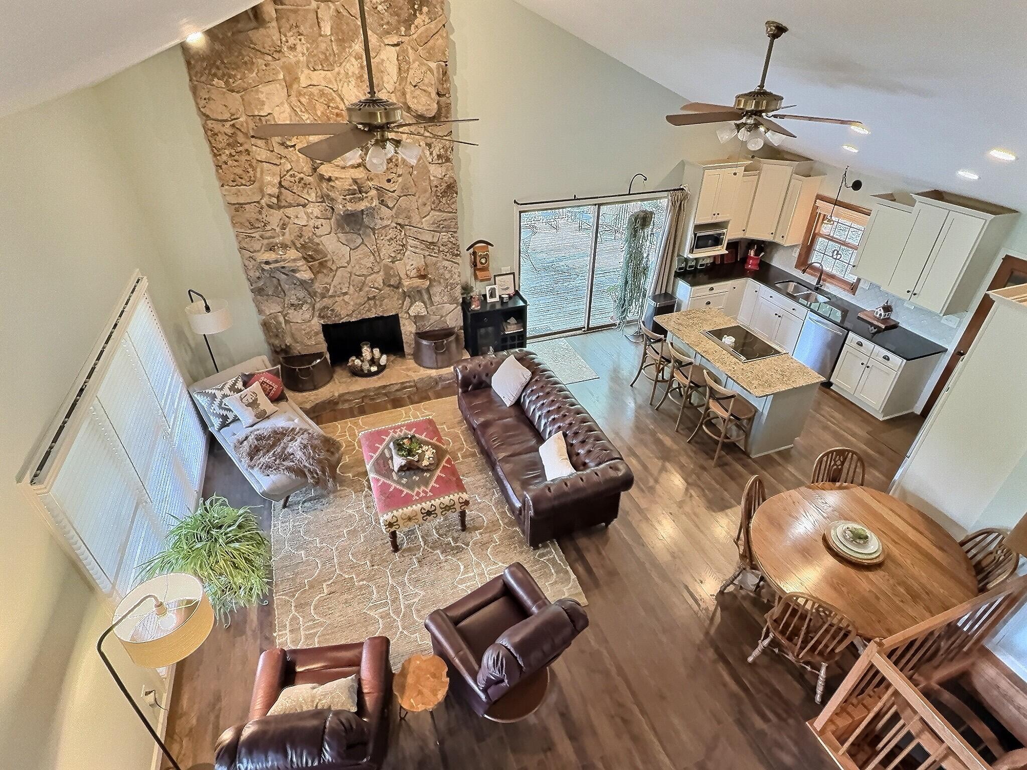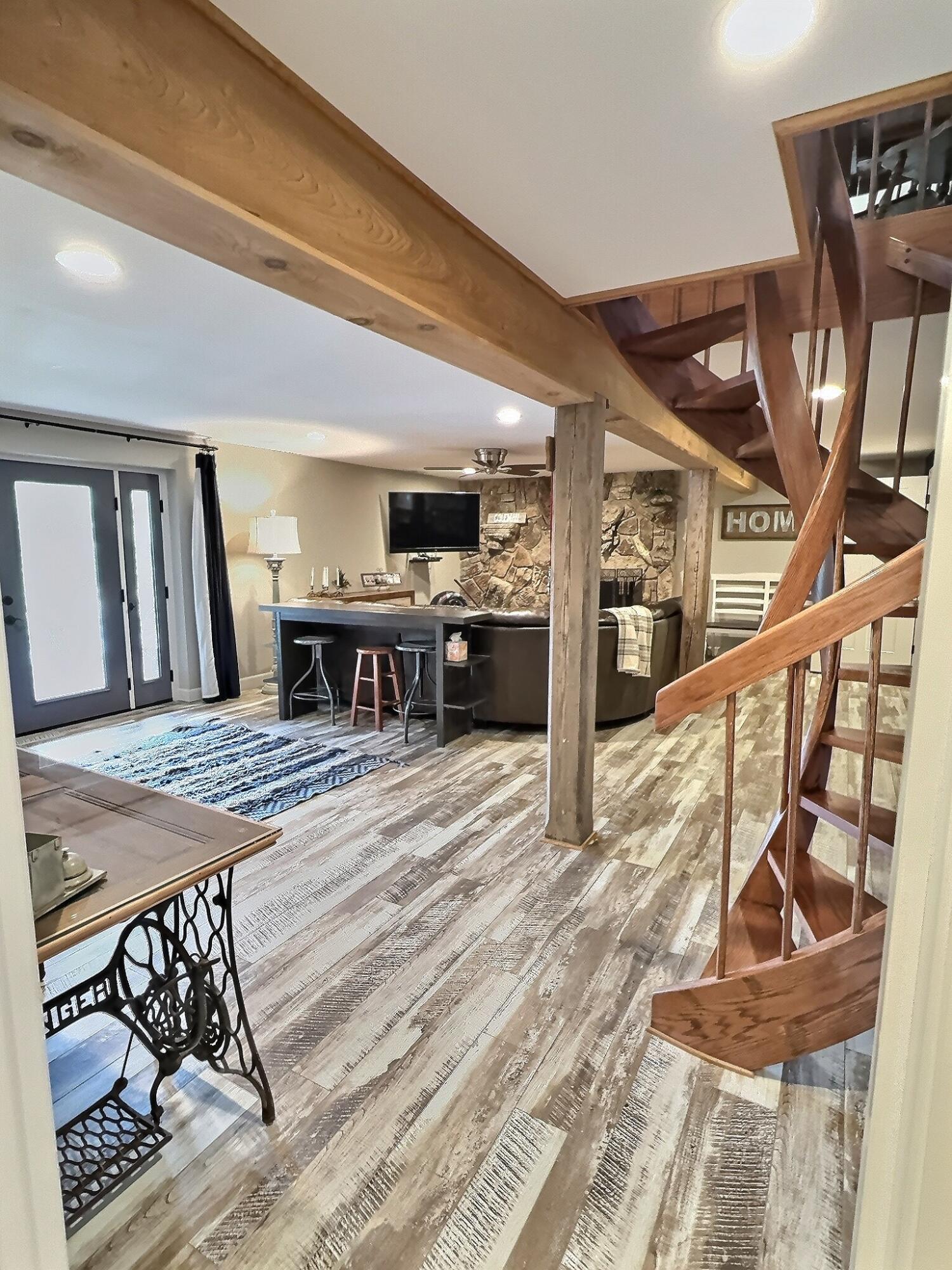 Absolutely Incredible Current River Home in Van Buren! This completely remodeled 5-Bedroom 2- Bath home is just around the bend from the Famous Bass-Rock hole of water just upriver form the town of Van Buren. The view and water access of this property are second to none when it comes to River Front homes on this entire stretch of the Middle Current River. After a day on the river, you can literally pull your boat or kayak right up to the property and walk 50 feet up the gentle slope right to the home. As you walk up to and into the home one of the first things that grabs your eye is the towering 2-story rock fireplace that was constructed by a local artisan with hand selected rocks gathered by the owners. Inside the living/dining area you'll notice a spacious island flanked by beautiful custom cabinetry and custom granite countertops. There are two large bedrooms and a spacious bathroom with a beautiful custom walk-in Shower on the main level and a large loft with another bed upstairs. Downstairs you'll find another large living are adorned by the same rock fireplace that extends from the main level. Off of the living are there are two more bedrooms and another spacious full bathroom to accompany this separate living area. This beautiful home will come fully or partially furnished and will be truly turnkey and ready to enjoy! With it's wrap around expansive deck, stunning river views, high-end amenities and absolutely second to none access this Current River Home is Truly Exceptional!