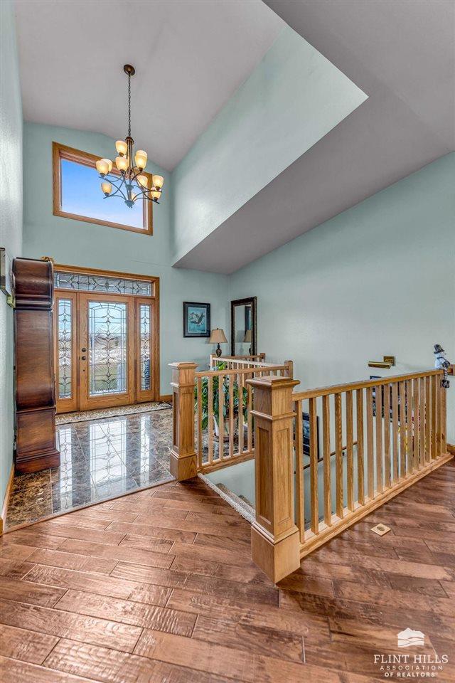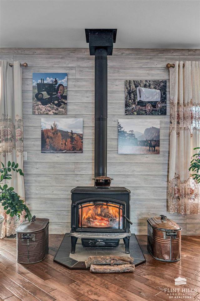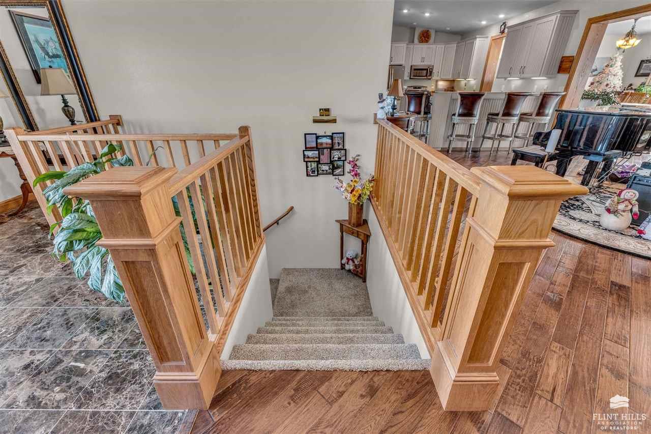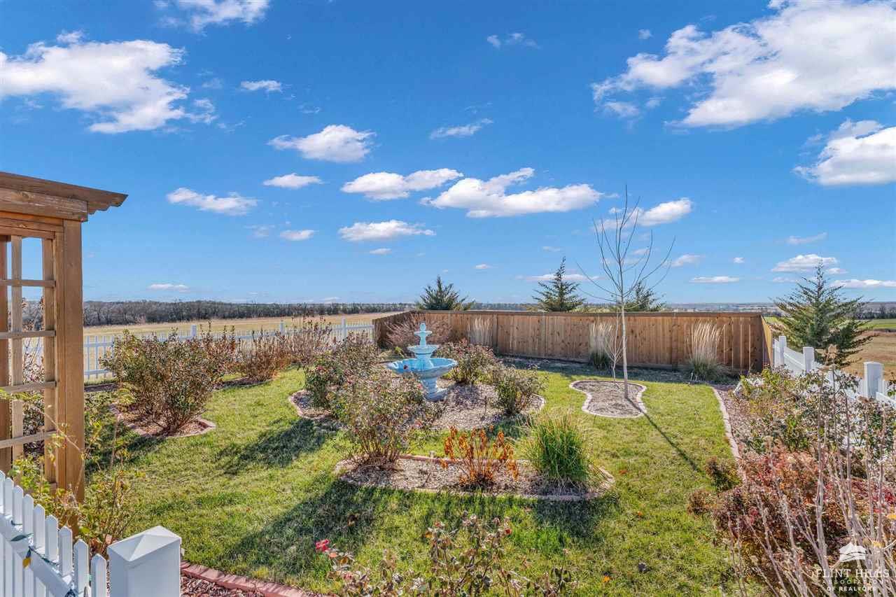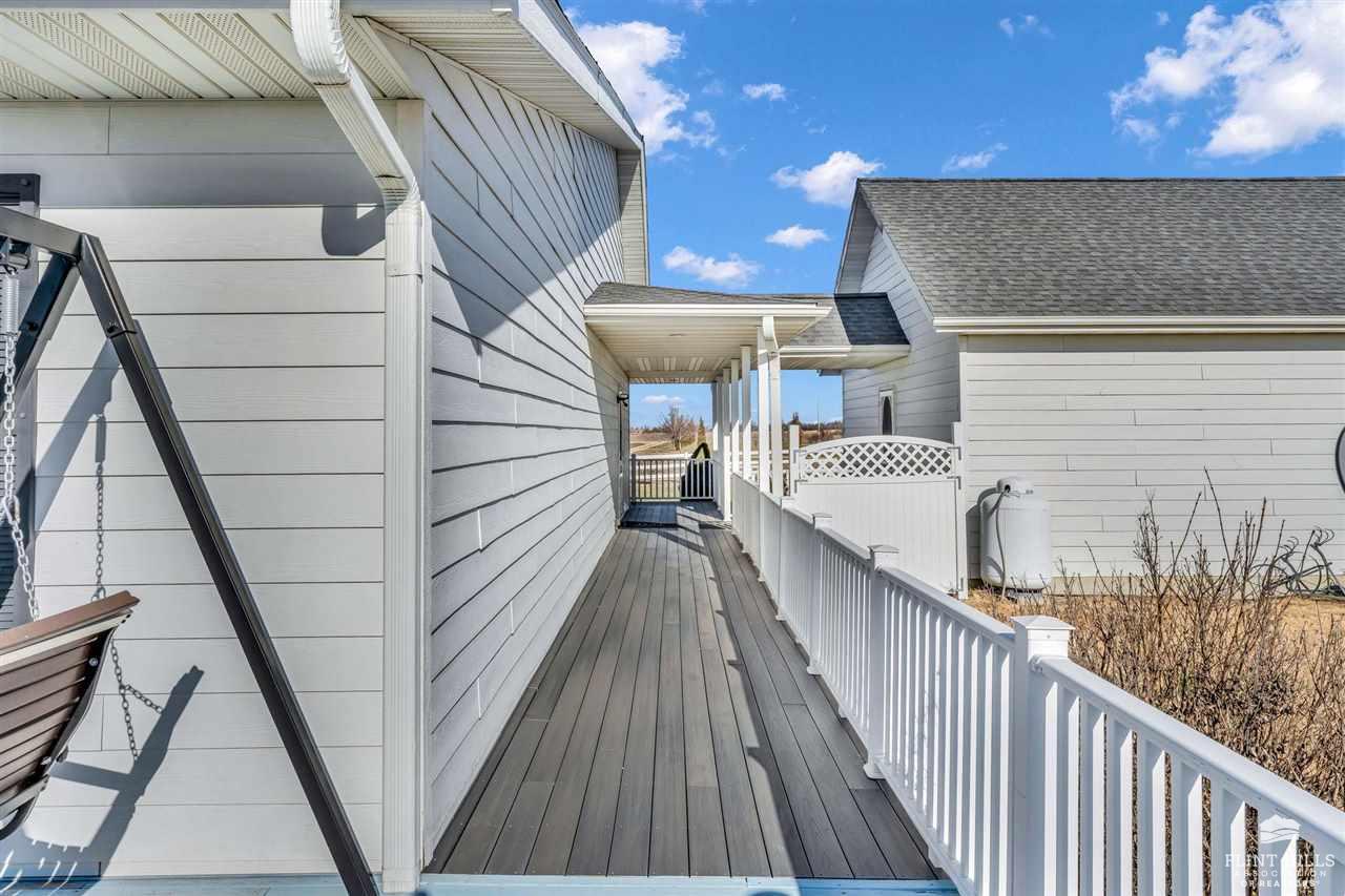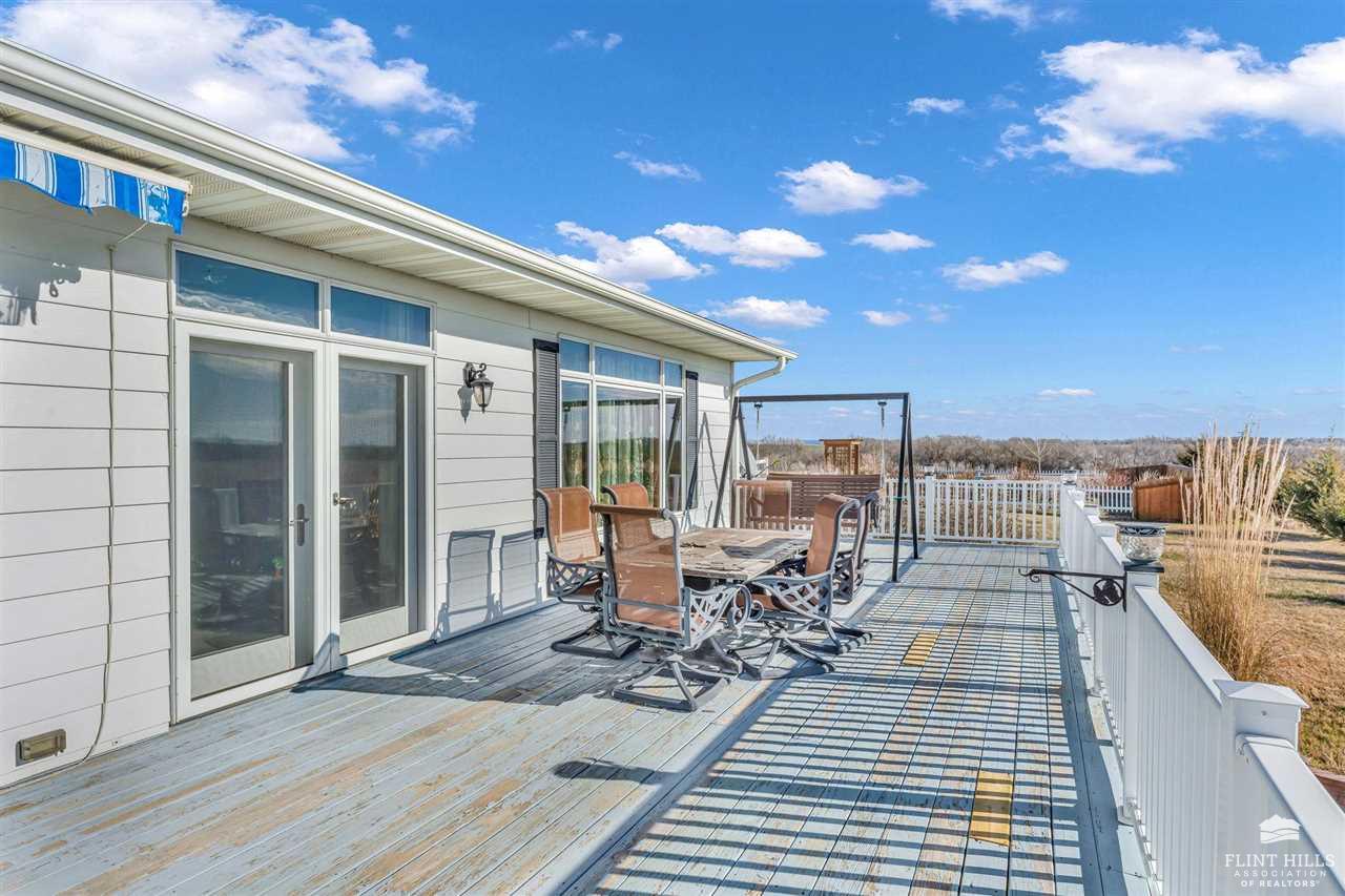 BE AWE STRUCK as you pull down the well manicured entrance to this charming countryside home nestled on 19.8 acres of serene land, featuring two 40x60 outbuildings. The inviting wrap-around porch leads you to the front entrance where you're greeted by vaulted ceilings, stunning marble floors, and an open-concept floor plan that flows seamlessly throughout the main level which is over 3000 total square feet. The spacious kitchen is complete with newer appliances, custom cabinets, gorgeous high grade granite countertops and large eat-in bar which is perfect for entertaining. The family room & primary bedroom feature elegant double sided gas fireplaces w/beautiful custom mantels. Step outside onto the back deck where you can enjoy peaceful views of the surrounding prairie land, ideal for outdoor living and relaxation. The full, unfinished basement with a walk-out to the backyard provides endless potential for additional living space or customization to suit your needs.