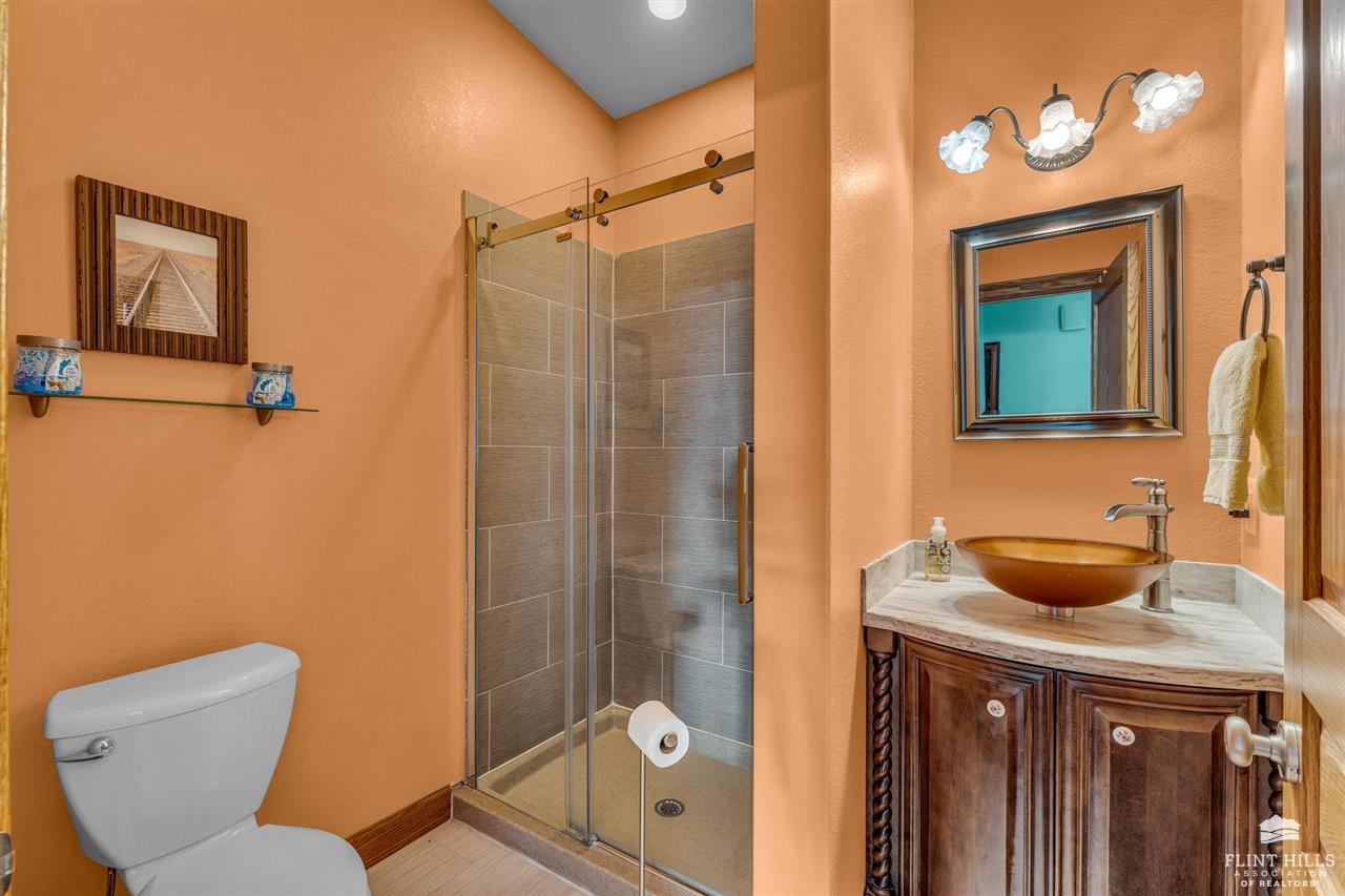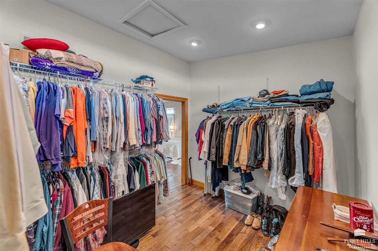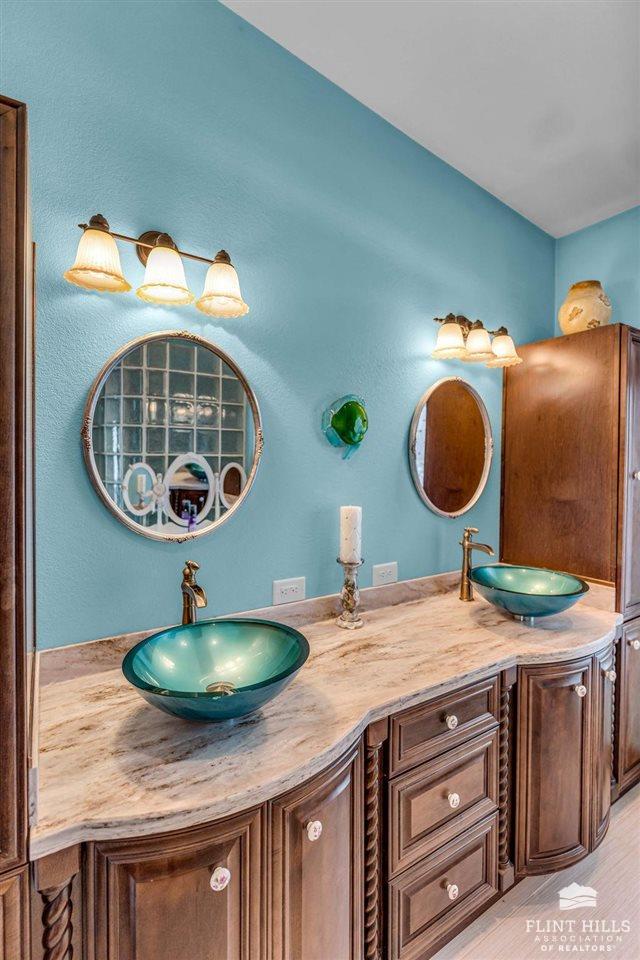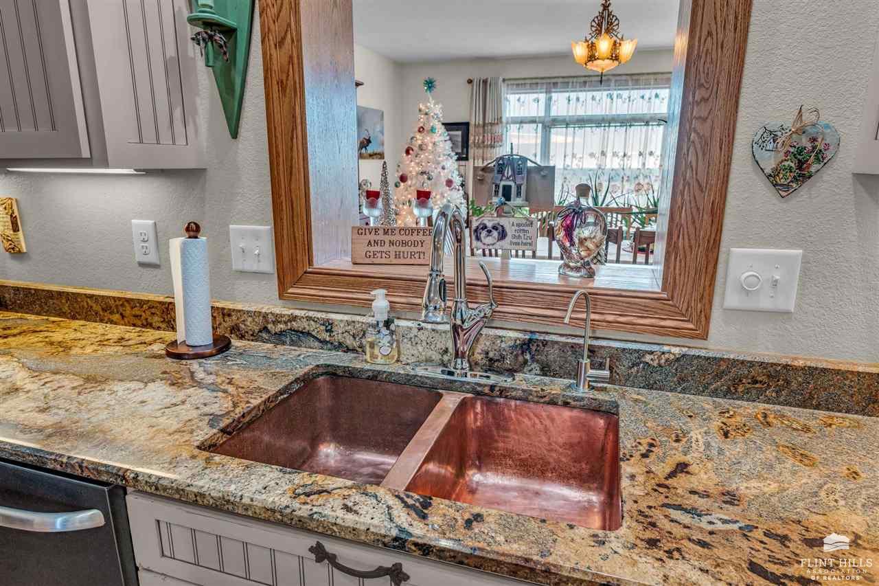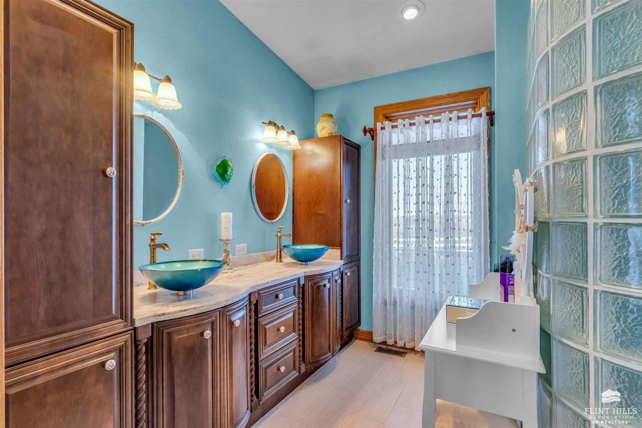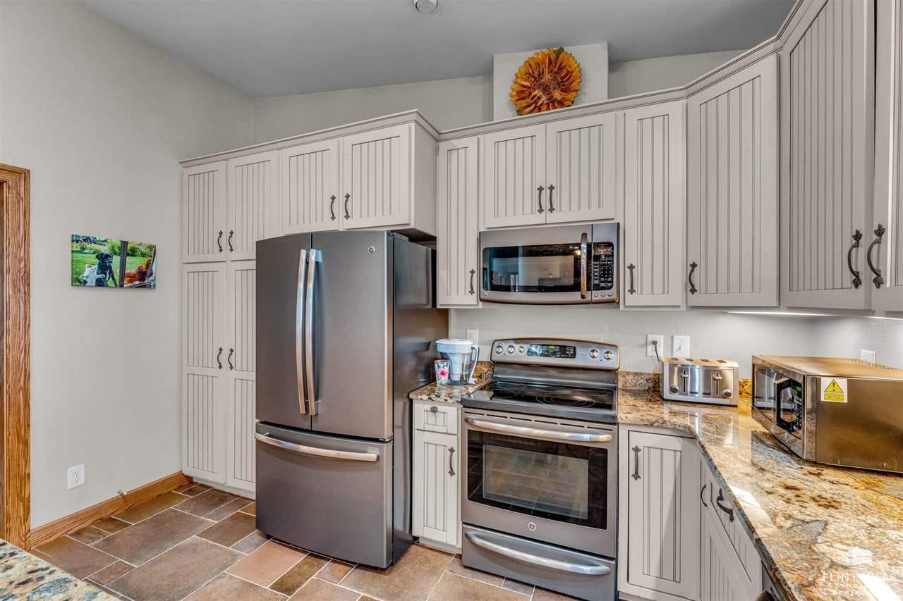 BE AWE STRUCK as you pull down the well manicured entrance to this charming countryside home nestled on 19.8 acres of serene land, featuring two 40x60 outbuildings. The inviting wrap-around porch leads you to the front entrance where you're greeted by vaulted ceilings, stunning marble floors, and an open-concept floor plan that flows seamlessly throughout the main level which is over 3000 total square feet. The spacious kitchen is complete with newer appliances, custom cabinets, gorgeous high grade granite countertops and large eat-in bar which is perfect for entertaining. The family room & primary bedroom feature elegant double sided gas fireplaces w/beautiful custom mantels. Step outside onto the back deck where you can enjoy peaceful views of the surrounding prairie land, ideal for outdoor living and relaxation. The full, unfinished basement with a walk-out to the backyard provides endless potential for additional living space or customization to suit your needs.