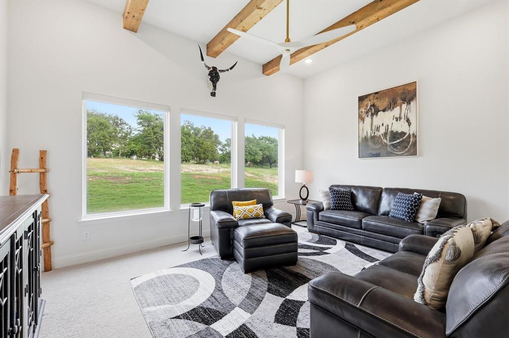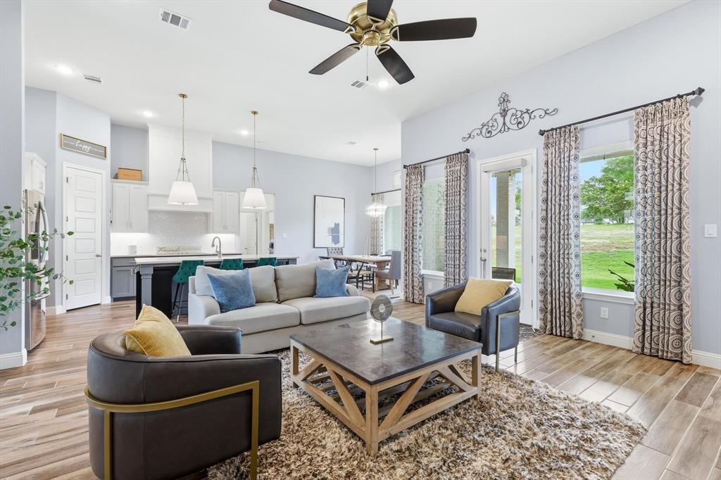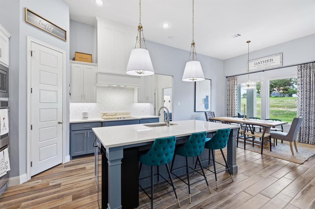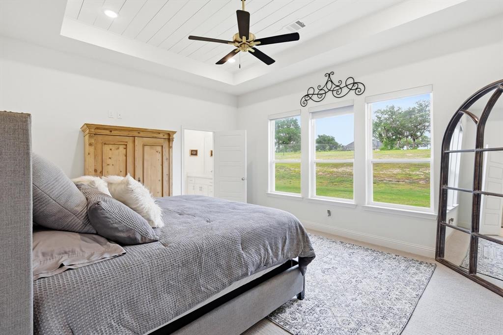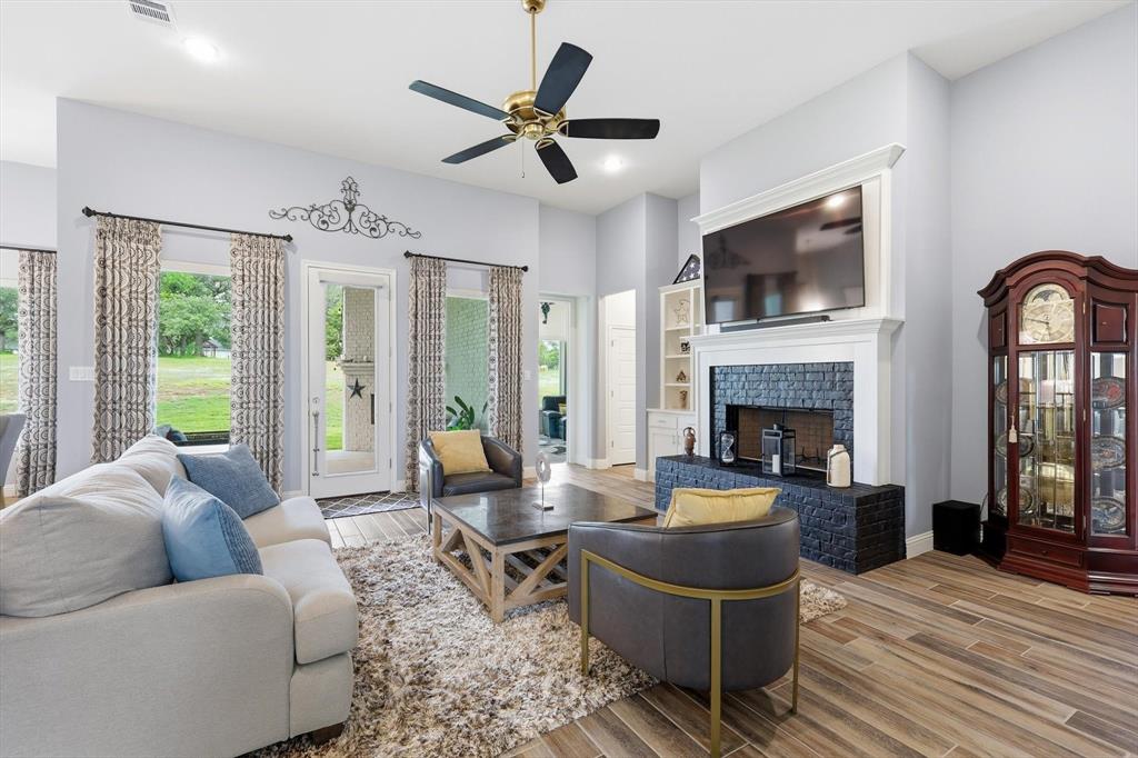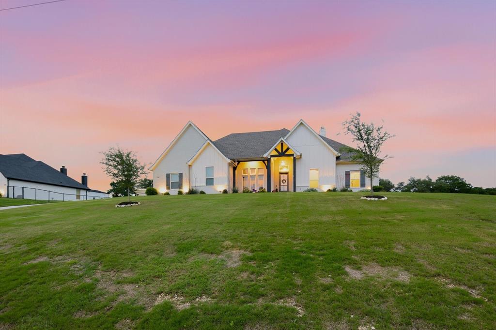 Welcome to 200 Finney Dr, a beautifully crafted custom home by Abba River Homes, nestled on over an acre in the sought-after Vintage Oaks community in Weatherford. Built in 2022, this exceptional single-story residence offers 4 bedrooms, 3 full baths, and approximately 2,644 square feet of thoughtfully designed living space, blending modern comfort with timeless style. Step inside to an inviting open-concept layout perfect for both everyday living and entertaining. The spacious living area showcases soaring ceilings, abundant natural light, and a stunning wood-burning fireplace that serves as the focal point of the home. The chef’s kitchen is equally impressive, featuring built-in appliances, double ovens, an electric cooktop, custom cabinetry, a large island, and a walk-in pantry—ideal for gatherings and meal prep alike. You will love the view from the front porch while having your morning coffee or evening cocktail. Do NOT miss this one! The private primary suite provides a relaxing retreat, complete with a spa-like ensuite bath offering dual vanities, a separate shower, soaking tub, and a generous walk-in closet. Three additional bedrooms and well-appointed bathrooms provide flexibility for family, guests, or a home office. Enjoy the tranquility of country living with ample outdoor space to create your ideal backyard oasis, whether for entertaining, gardening, or simply unwinding under the Texas sky. The property also includes a 3-car attached garage, durable brick exterior, and an aerobic septic system. Conveniently located with easy access to Weatherford, Azle, and Fort Worth, this home offers the perfect balance of peaceful living and nearby amenities. Situated within Azle ISD, this property is a rare opportunity to own a nearly new custom home with space, style, and functionality.
