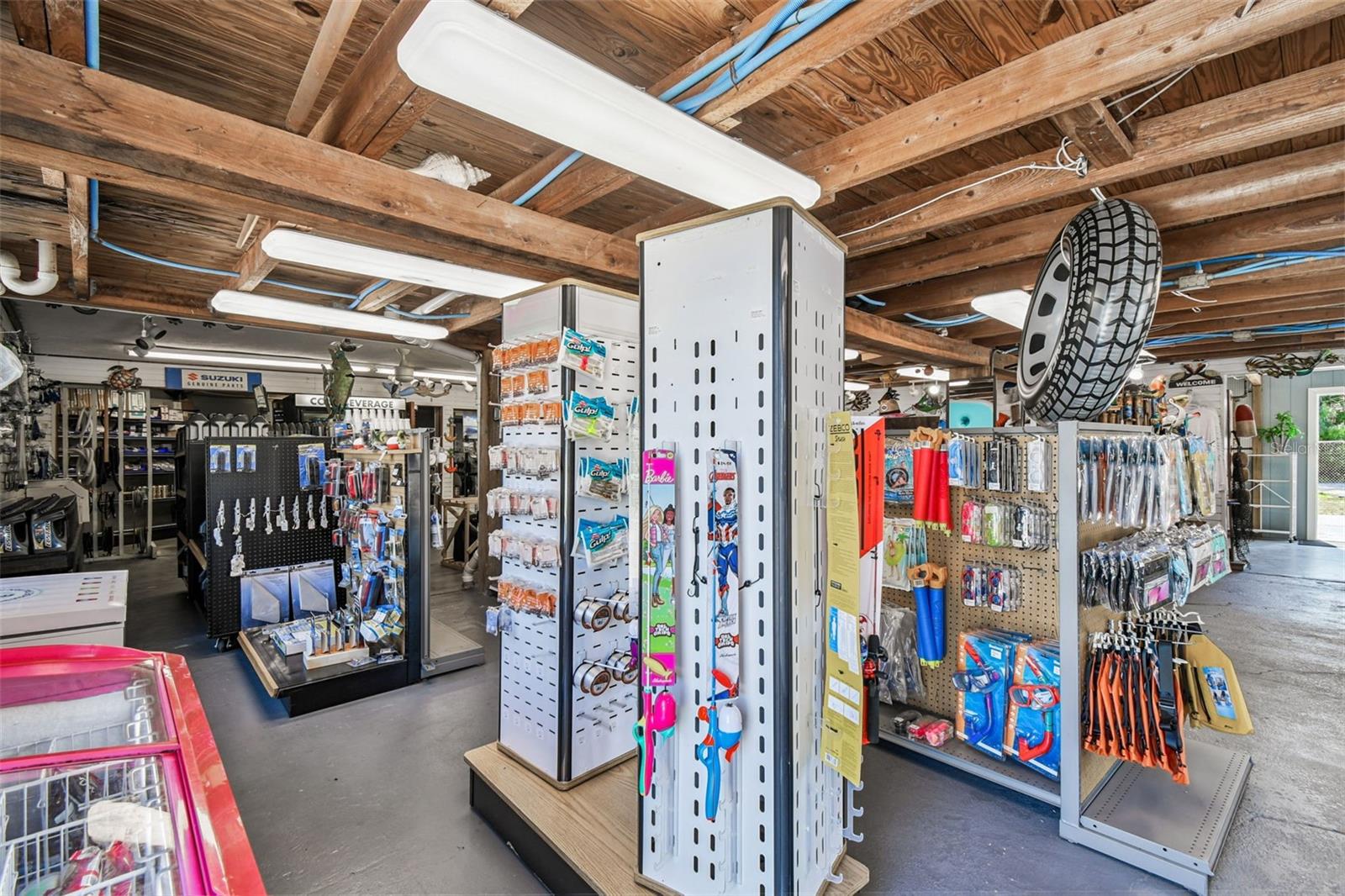 Spacious retail building offering fishing and boating supplies, plus an on-site ice machine generating income.