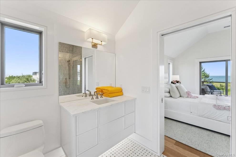 Welcome to 451 Dune Road, a newly completed coastal masterpiece set on 0.70 acres with over 90 feet of pristine ocean frontage. This 4,000 square foot home offers meticulously designed interiors with premium finishes throughout. The gourmet kitchen features sleek stone countertops and top of the line Wolf appliances, seamlessly flowing into open-concept living and dining areas that showcase panoramic ocean and bay views, filling the space with natural light. The residence includes four bedrooms, with two primary suites - one on each floor, three full baths, and one half bath. Enjoy the warmth of two gas fireplaces, one indoors and one outdoors. The second-floor lounge provides an ideal retreat for relaxation or casual gatherings. Step out onto the expansive 1,125 square foot rear deck, where a 16' by 14' pool invites you for a refreshing dip. Your own beach access leads directly to the sand and surf, enhancing the oceanfront living experience. Practical features include a 400 square foot lower level garage offering ample storage space. Located close to Westhampton Beach's vibrant Main Street, this property offers easy access to a variety of shops, restaurants, and entertainment options. This brand new, meticulously designed home presents a rare opportunity to own a premier oceanfront property in one of the Hamptons' most desirable locations on Dune Road. * House has been professionally stage. * New Construction - Taxes TBD.