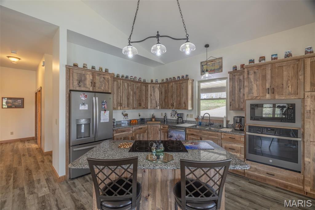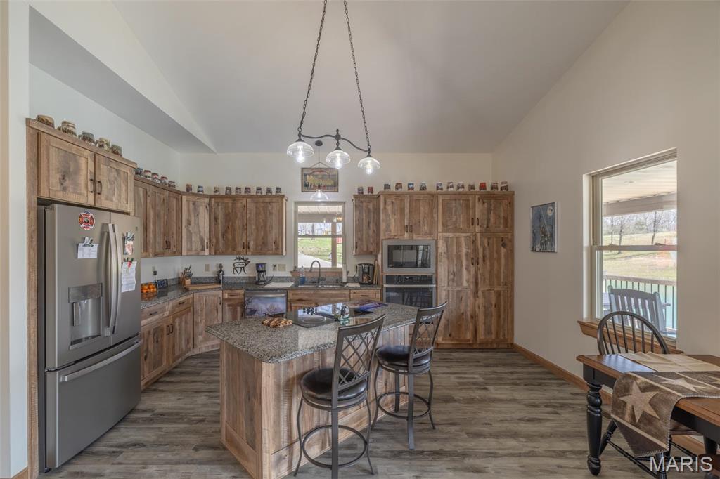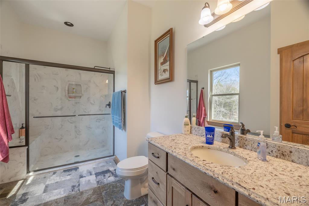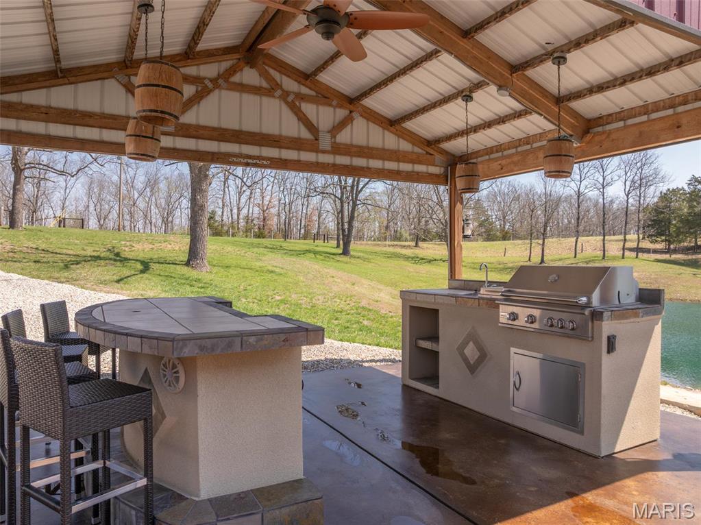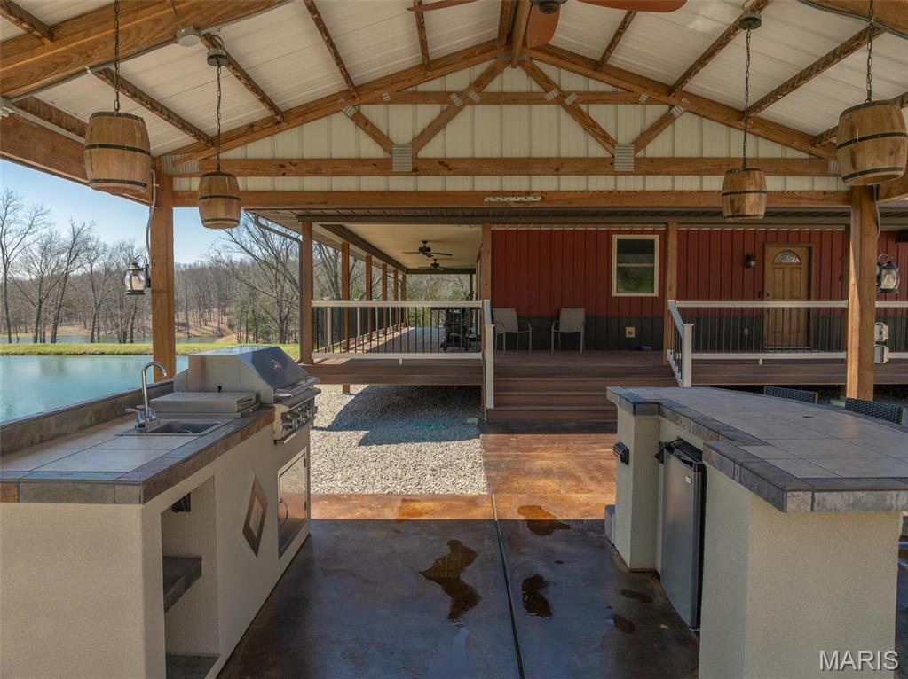 Welcome to Hunters Paradise. 85+/- wooded acres with custom built 4 year new home. Enjoy the views from the Full wrap around composite porch overlooking the 3/4 ac lake, 4 ac lake and wooded property. 2 bed, 2 bath, w/MFL, Trophy room and o/s garage. Enjoy the vaulted great room and open kitchen, custom solid wood cabinets and granite counter tops. The lower level partial walk out basement offers a full concrete safe room and processing area with commercial sink. The roof is top of the line "standing seam" metal. Want to cook out - the outdoor kitchen & bar is perfect for entertaining. After a long day, walk out of the owners suite, to the 8 person hot tub. There is plenty of room to store your equipment in the outbuildings and lean to. Check out the stone retaining wall and beach area that overlooks the stocked lakes. Prime deer and turkey hunting, maintenance of food plots and prescribed burning. Trails take you around the majority of the land. It's perfect peaceful country living.