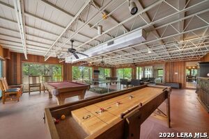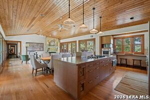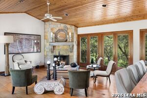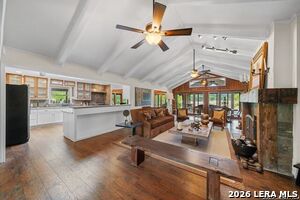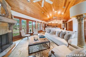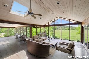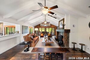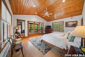 Set along one of the most coveted stretches of the Blanco River, this remarkable 67+/- acre riverfront ranch offers an exceptional combination of land, water, and improvements in the heart of Wimberley, Texas. With approximately 1,450 feet of crystal-clear, deep-water Blanco River frontage, the property delivers year-round recreation, peaceful scenery, and rare access to one of the Hill Country's most iconic rivers. The ranch is thoughtfully improved with two updated residences, each positioned to take full advantage of the surrounding landscape and river views. The River Home features 3 beds and 2 baths with a modern, light-filled design, quality finishes, a spacious kitchen, and a striking stone fireplace. A seated sunroom overlooks the Blanco River, creating an ideal space to relax and take in the sights and sounds of the water below. The Llama Home offers 3 beds and 2 baths and also overlooks the river, with vaulted ceilings, a fireplace, a large game room, and an oversized sunroom capturing sweeping views of the river and rolling hills beyond-perfect for entertaining or extended stays. Additional improvements include a large equipment barn complete with a bunkhouse, kitchen, and bathroom, providing excellent flexibility for staff, guests, or multi-generational use. Gently rolling terrain, mature trees, and panoramic Hill Country views create a private and picturesque setting, all while being conveniently located within easy reach of Austin and San Antonio. Wimberley's vibrant arts scene, local dining, and small-town charm provide the perfect complement to this tranquil riverfront retreat. With its rare deep-water Blanco River frontage, multiple homes, and prime Wimberley location, this property presents a unique opportunity for a private family retreat, recreational ranch, or legacy Hill Country holding-offering the best of riverfront living and Texas Hill Country beauty.