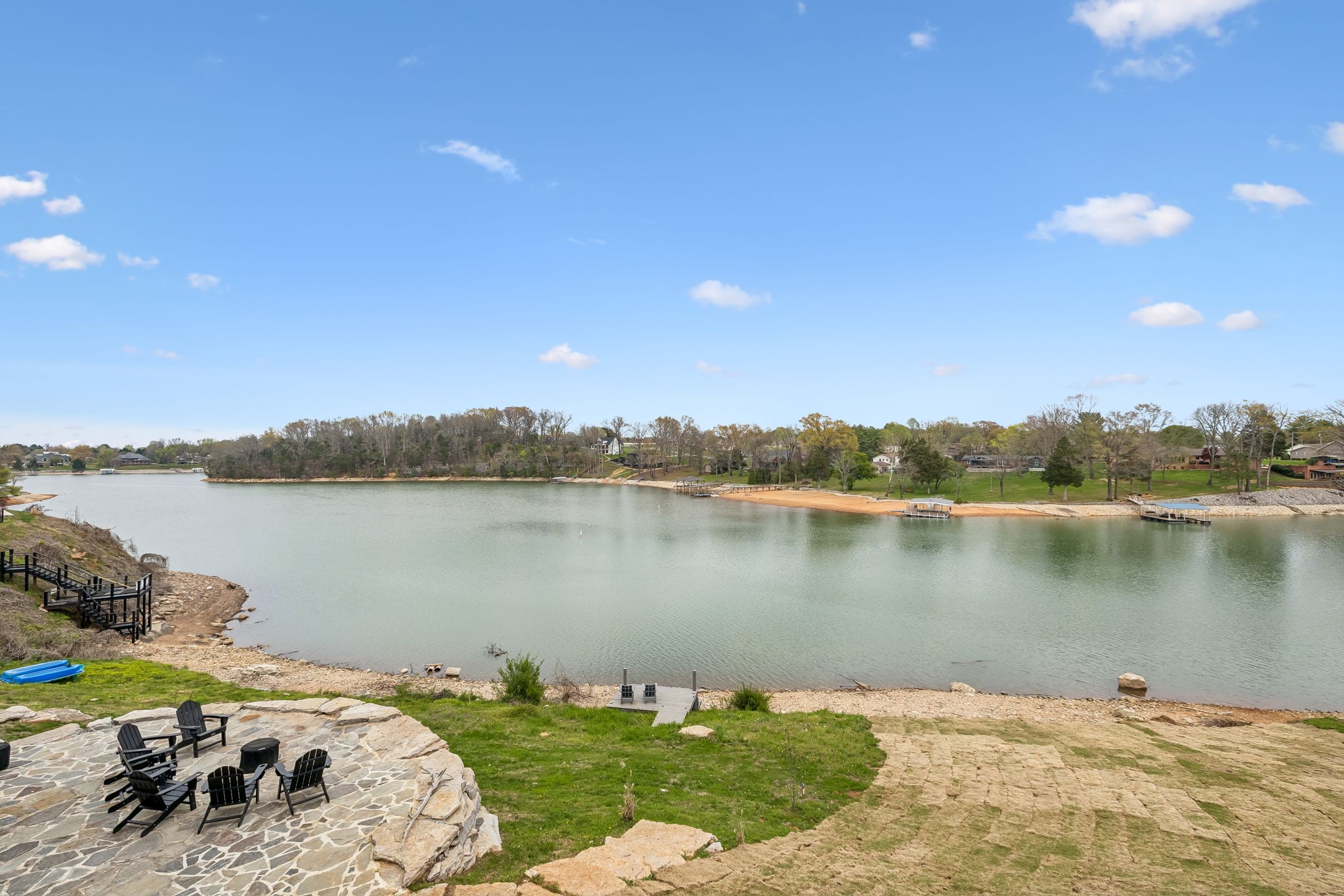 This home offers 2,714 sq ft with 4 bedrooms, 3 baths, plus a spacious bunk room featuring two custom full-over-full bunk sets—ideal for hosting guests. Enjoy 180-degree lake views and an oversized 1-car garage (12x25) with a 9’ insulated door and commercial-grade epoxy flooring, providing excellent space for boat or gear storage.