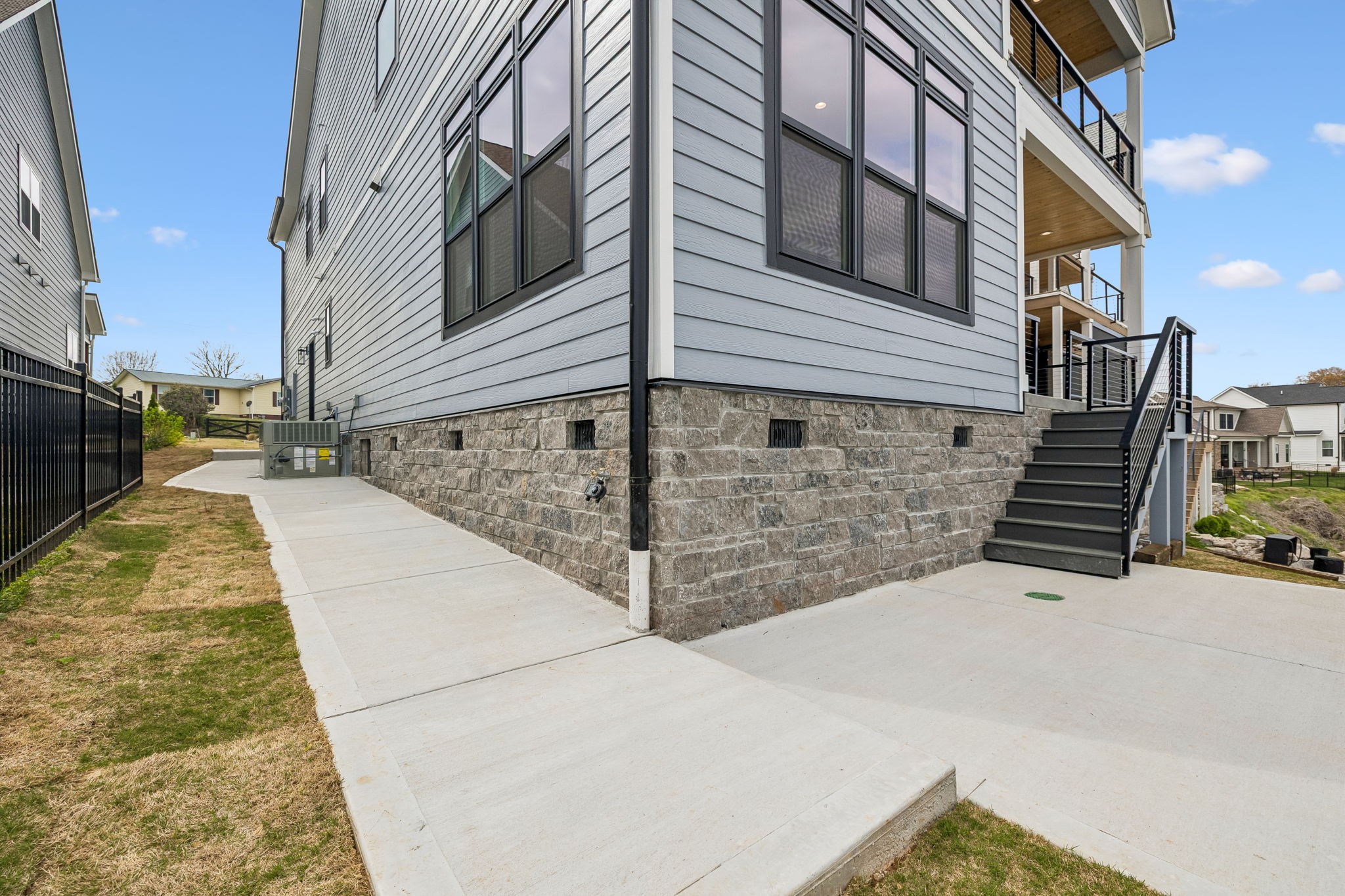 Built above industry standards, the home features a fully core-filled foundation (4,000 PSI concrete) and a rear piling system driven to bedrock for enhanced stability. Exterior includes fiber cement siding and natural stone skirting.