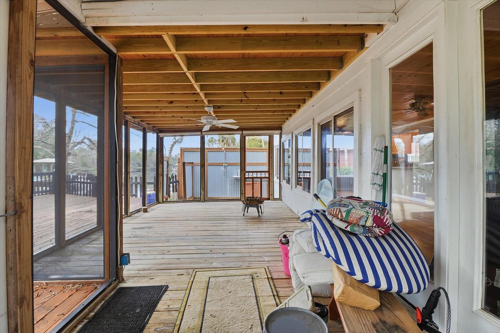 Outdoor living reaches new heights here, with an extensive deck overlooking the river, a large brick wood-burning fireplace perfect for evenings immersed in nature, a substantial concrete seawall, shaded deck for relaxing or entertaining, and a screened porch complete with an outdoor shower and hot water.